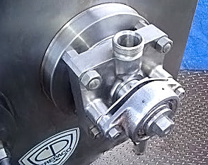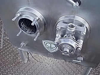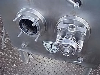 Intercambiador de calor de superficie barrida Crepaco Rota-Pro. Número de serie: C-7850 (2HD672). Número de pedido: 39-36378. Dwg. Nº: 12B-P-385695. Área de superficie de calentamiento: 18 pies cuadrados. Se proporcionan camisas de cilindro ASME estándar para calentar con agua o vapor hasta 450 °F o enfriar con agua, salmuera, glicol u otros medios líquidos adecuados. Dimensiones del cilindro interior: 6 pulgadas de diámetro x 71 pulgadas de largo. Cilindro interior: acabado cromado sobre un cilindro de níquel. (36) Cuchillas raspadoras: 7-3/4 pulg. de largo x 3/4 pulg. de ancho. Los raspadores giratorios, con cuchillas raspadoras fijas, barren continuamente la superficie del cilindro para limpiar el producto, produciendo simultáneamente un nivel altamente deseable de mezcla y agitación del producto que contribuye a la consistencia en la identidad del producto final. Motor eléctrico Reliance, 15 hp, 1760 rpm, 230/460 V, 40-20 amperios, 60 Hz, trifásico. Entradas: (2) 1-1/2 pulg. de diámetro. accesorios roscados, (1) 2 pulg. de diámetro. Puerto de medios con una brida cuadrada de 5 pulgadas de largo x 5 pulgadas de ancho que tiene (4) 5/8 pulgadas de diámetro. orificios de conexión a una distancia de centro a centro de 3 pulg. Salidas: (2) 1-1/2 pulg. accesorios roscados, (1) 2 pulg. de diámetro. Puerto de medios con una brida cuadrada de 5 pulgadas de largo x 5 pulgadas de ancho que tiene (4) 5/8 pulgadas de diámetro. orificios de fijación a una distancia de centro a centro de 3 pulgadas. Dimensiones totales: 9 pies 4 pulgadas de largo x 44 pulgadas de ancho x 72-1/2 pulgadas de alto.