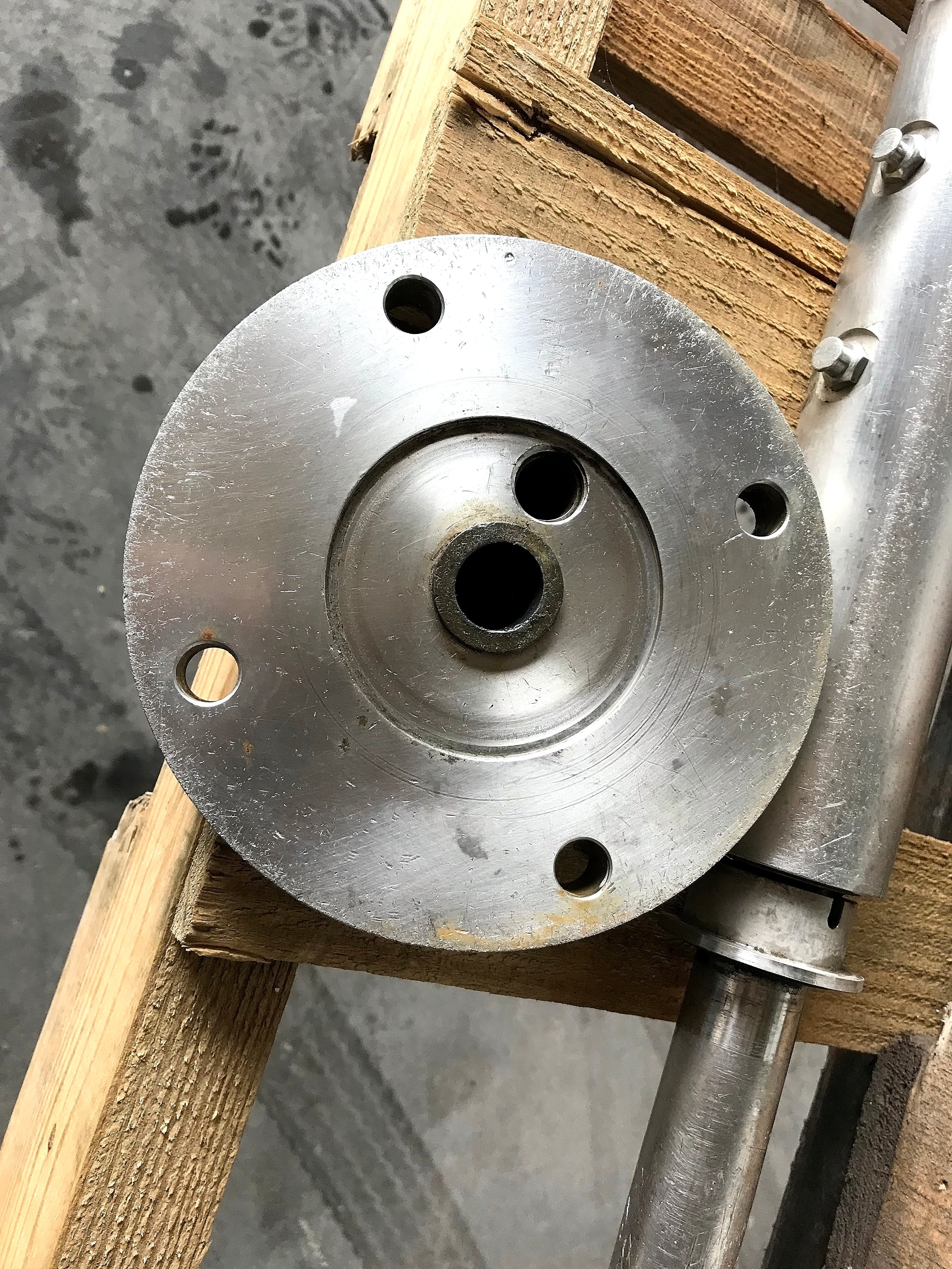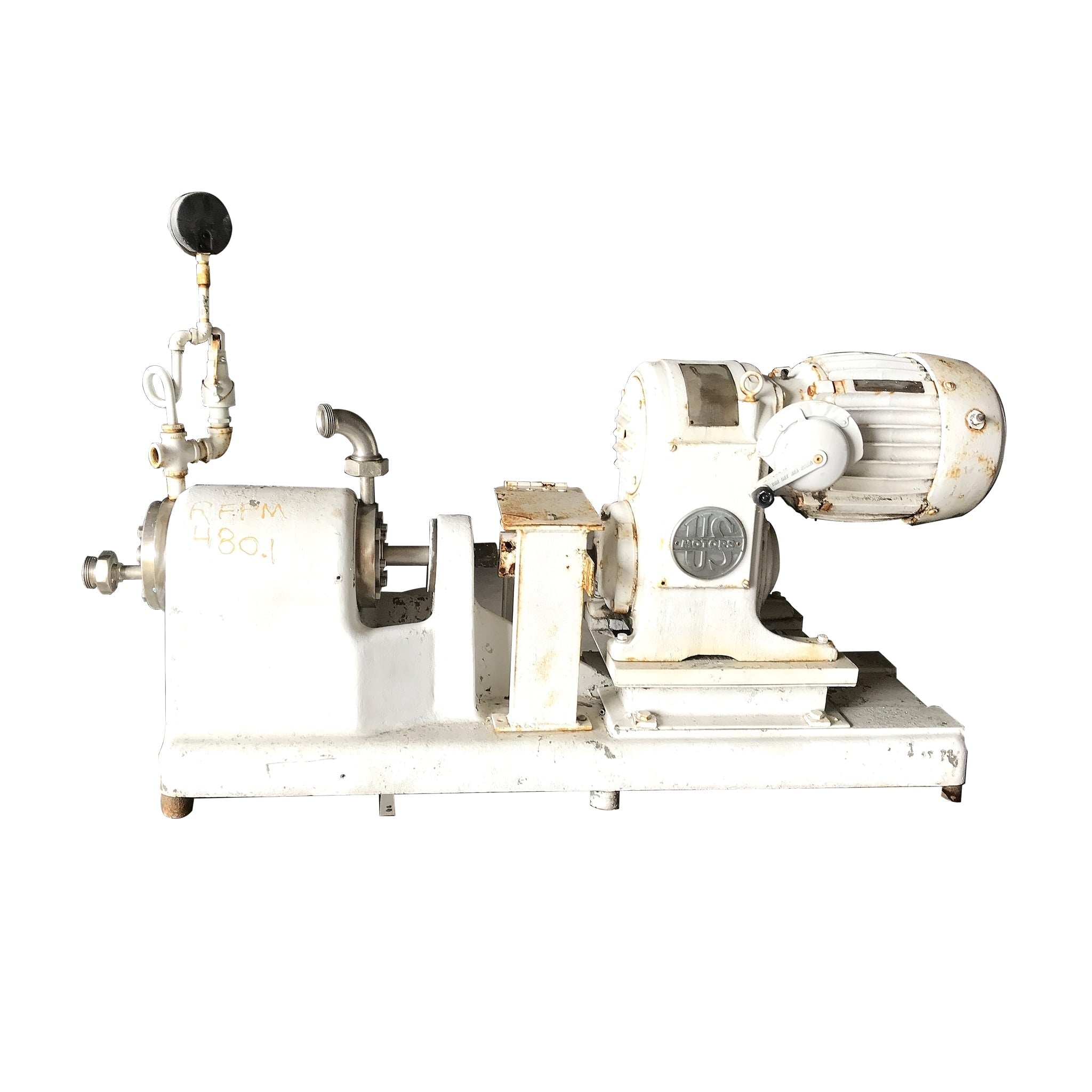Intercambiador de calor de superficie raspada Votator 3 x 12. Modelo: X1-W. S/N: 62383. Dimensiones de la cámara: 3 pulgadas de diámetro x 12 pulgadas de largo. Eje del raspador: 2-1/4 pulgadas de diámetro x 11-3/4 pulgadas de largo. (2) 11-3/4 pulgadas de largo x 1 pulg. W raspadores de baquelita. Motor de velocidad Varidrive de EE. UU., 2 hp, 1200 rpm, 220/440 V, 8,5/4,25 amperios, 60 ciclos, trifásico, velocidad máxima: 1170 rpm, velocidad mínima: 242 rpm. Entrada de producto: (1) rosca de 3/4 pulg. (macho, chaqueta), rosca de 1-1/2 pulg. (macho). Salida del producto: (1) rosca de 3/4 pulg. (macho, chaqueta), (1) rosca de 1-1/2 (macho). Dimensiones totales: 52 pulgadas de largo x 24 pulgadas de ancho x 36 pulgadas de alto (GK)