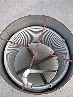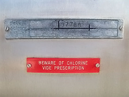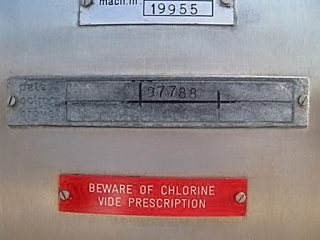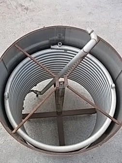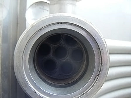 Intercambiador de calor de una etapa Stork. Número de máquina: 19955. Material de construcción: acero inoxidable 316. Dimensiones del tubo: 84 pies de largo x 3-1/2 pulgadas de diámetro. ½ pulg. de diámetro interior. tubos. Entradas/salidas: (3) ACME de 2 pulg., (1) puerto de tubería de 3 pulg., (1) FNPT de 1 pulg., (1) válvula de cierre FNPT de 1 pulg. Dimensiones totales: 6 pies 7 pulgadas de ancho x 7 pies 10 pulgadas de alto.