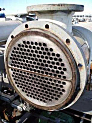 Intercambiador de calor Bell & Gossett. Material de construcción: acero inoxidable 316. (196) 5/8 pulg. de diámetro. x 74-1/2 pulg. L. multitubos. Área de superficie de transferencia de calor: 200 pies cuadrados. Volumen: 19 galones. MAWP: 150 psi a 375ºF, MDMT: -20ºF a 150 psi. Entradas: (2) 6 pulg. de diámetro. Puertos bridados ANSI de 150 lb, (1) 4 pulg. de diámetro. Puertos bridados ANSI de 150 lb. Salidas: (2) 2 pulg. de diámetro. FNPT, (1) 6 pulg. de diámetro. ANSI 150 lb, (1) 8 pulg. de diámetro. ANSI 150 lb, (1) 4 pulg. de diámetro. ANSI 150 libras.