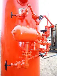 Intercooler vertical de amoníaco Vilter: 300 galones. N/S: B-29995-7B. Nat'l Bd: 7984. MAWP del lado de la carcasa: 150 psi a 650 °F. Entradas/salidas: (1) 1/2 pulg. de diámetro. puerto, (1) 1 pulg. de diámetro. puerto, (2) 1-1/2 pulg. de diámetro. Accesorios FNPT, (2) 2 pulg. de diámetro. puertos, (1) 5 pulg. de diámetro. puerto, (1) 6 pulg. de diámetro. puerto. Dimensiones totales: 3 pies 6 pulgadas de largo x 3 pies de ancho x 10 pies 10 pulgadas de alto (HB2)