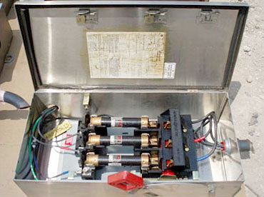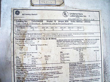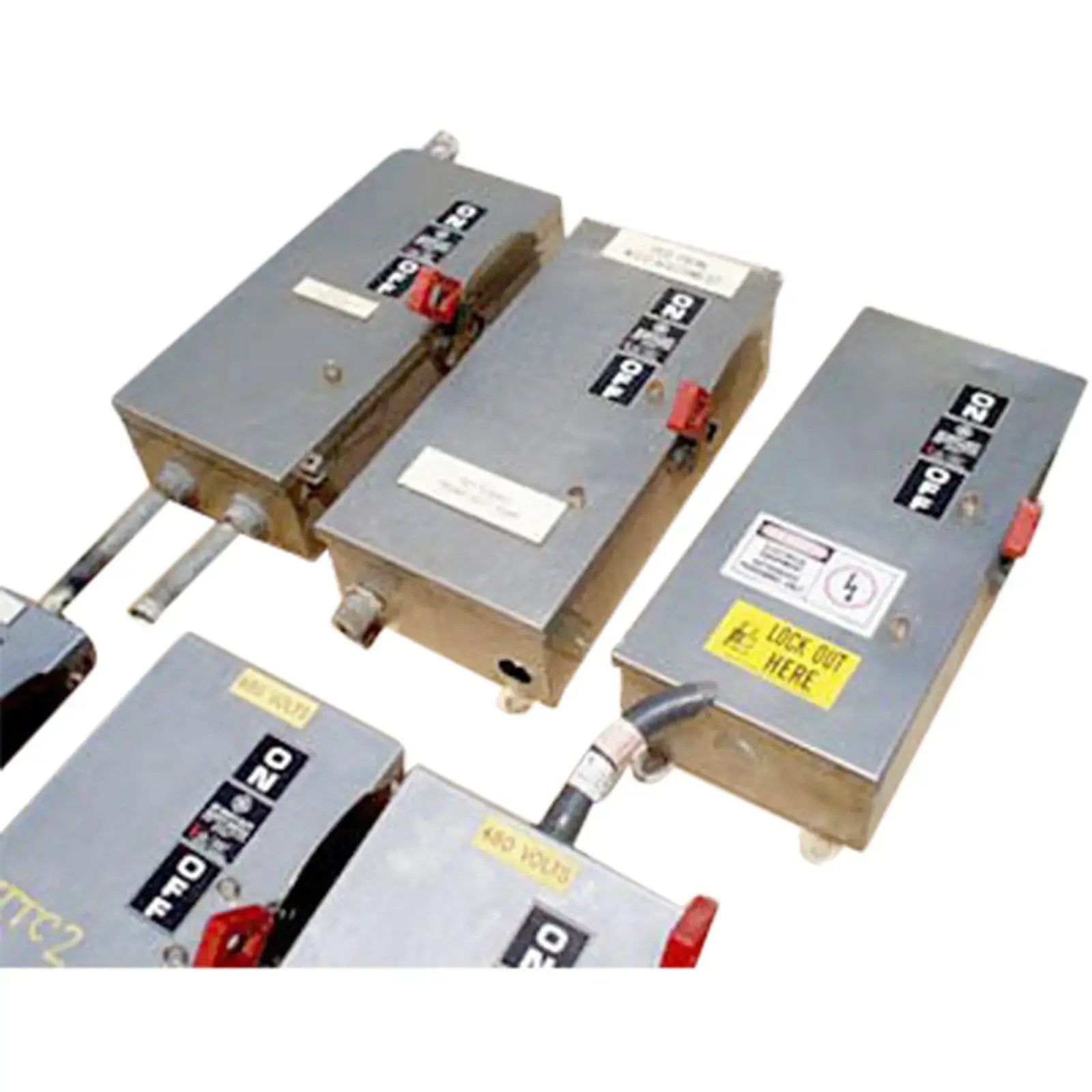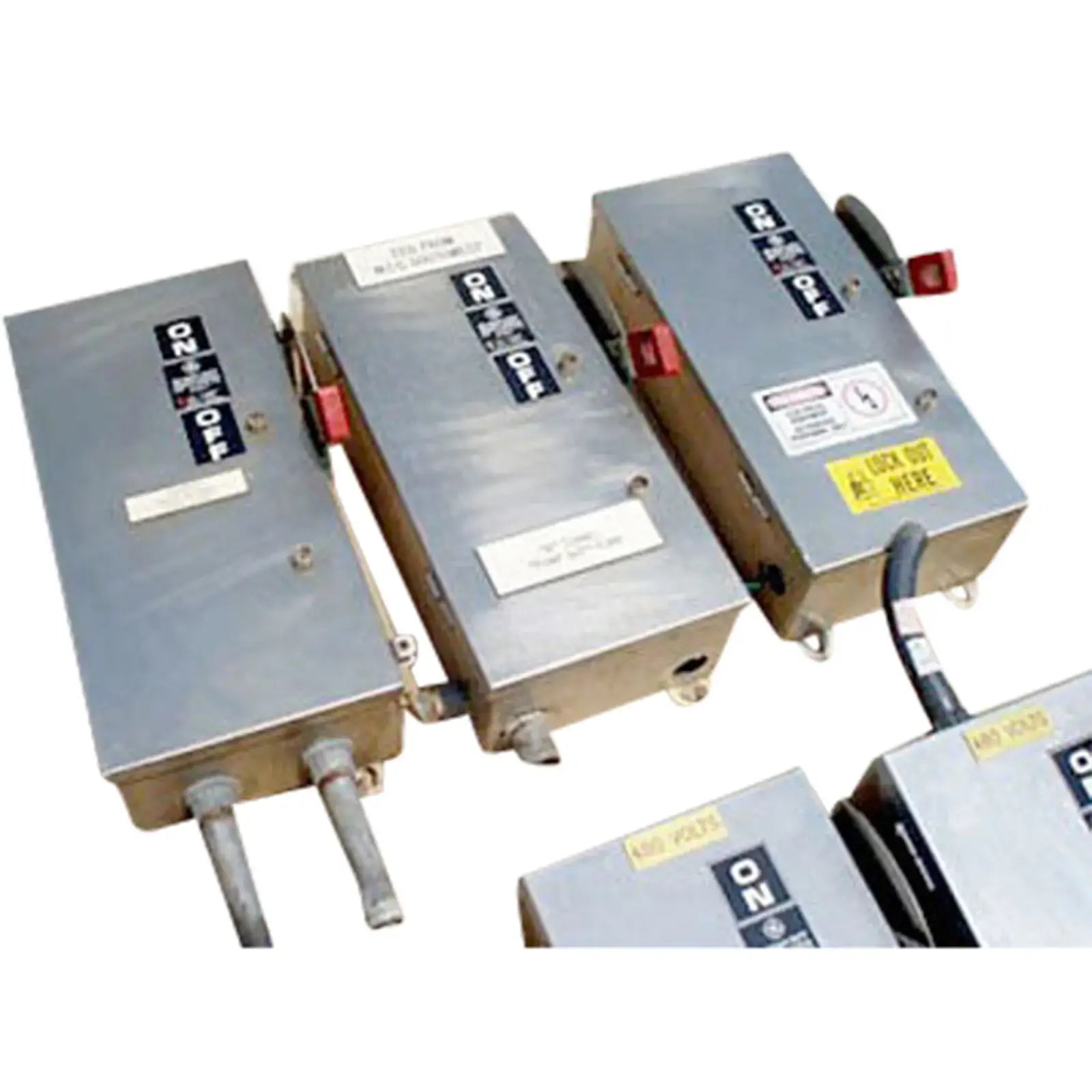 Interruptor de seguridad de servicio pesado General Electric: 60 amperios. Modelo: 10. N.º de catálogo: TH3362SS. Hp máx.: 50. Máx. Alimentación: 600 VAC/250 VDC. Dimensiones totales: 11 pulgadas de largo x 8-1/2 pulgadas de ancho x 1 pie 9 pulgadas de alto.