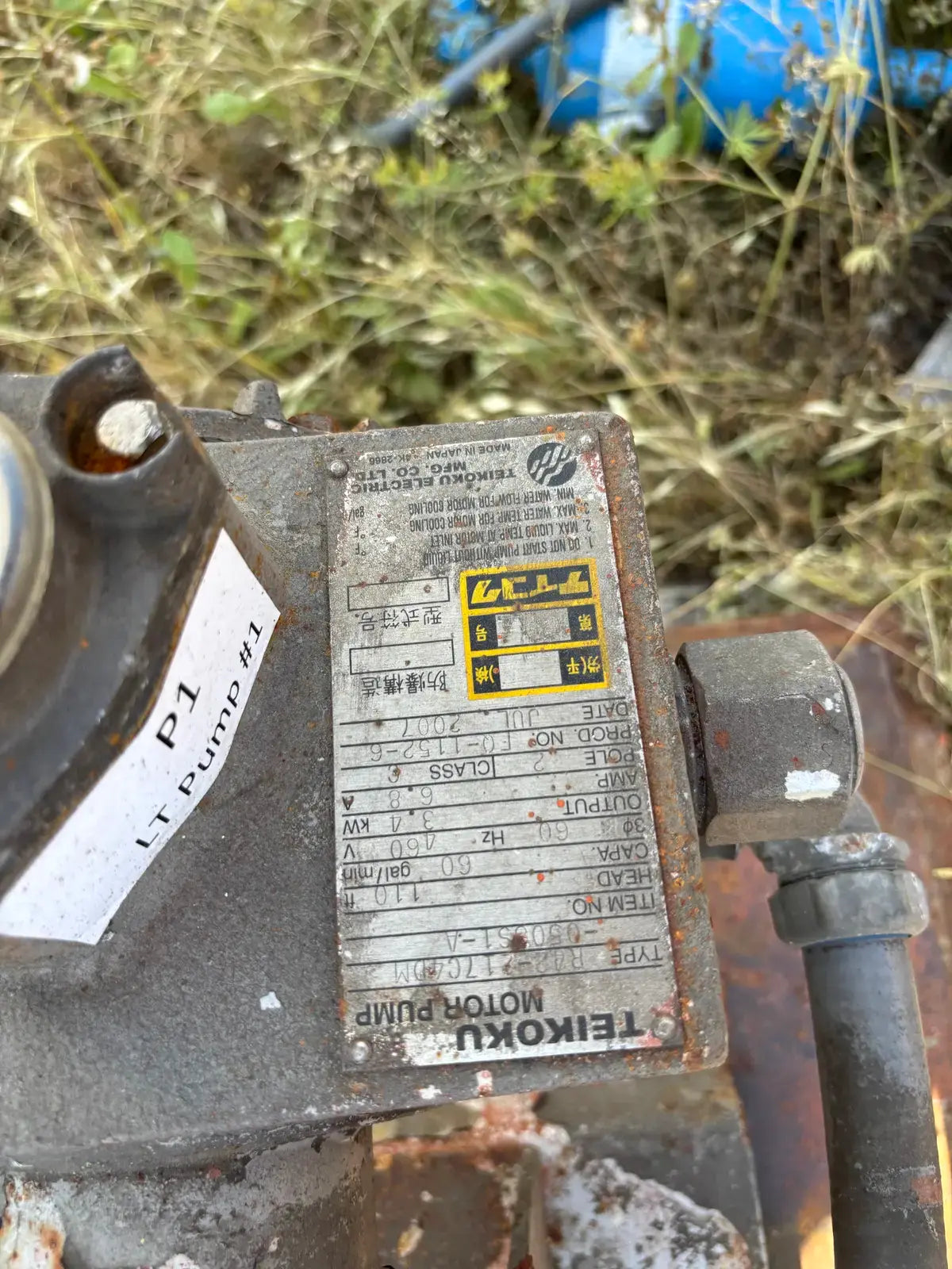 - Si hay varios motores, descripciones de motores frente a especificaciones: (2) Teikoku Pump Motor's - 4.5 Hp, 460 Volts, 3 Ph, 60 Hz