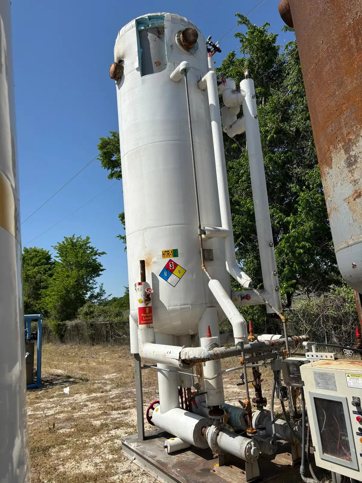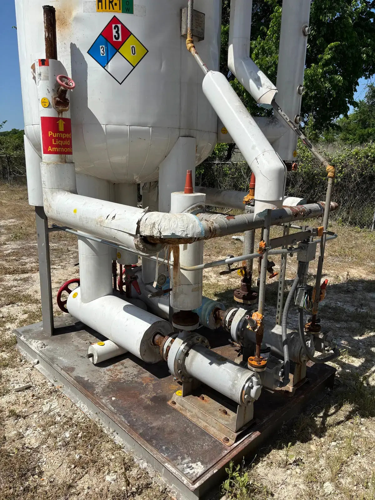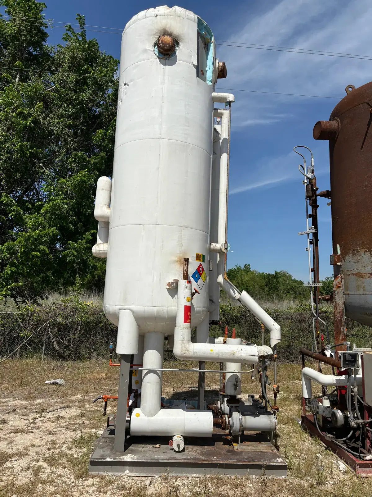 Recirculador vertical de amoníaco certificado por Industrial Service & Fabricators, Inc. Junta Nacional: 7012. N.º de serie: 07-7350. Año de fabricación: 2007. Presión máxima de trabajo (MAWP): 250 PSIG a 200 °F. Presión mínima de trabajo (MDMT): -20 °F a 250 PSI.