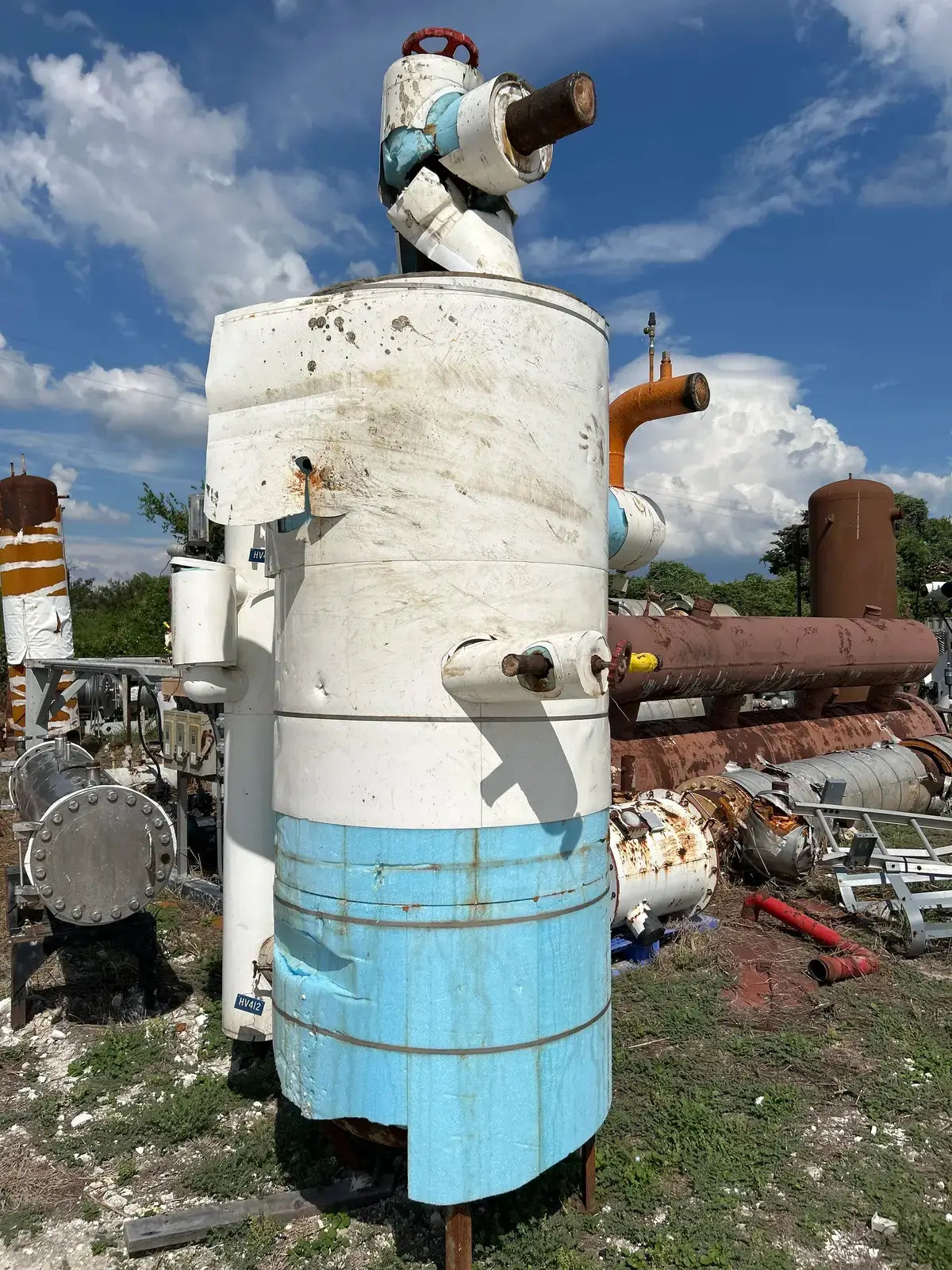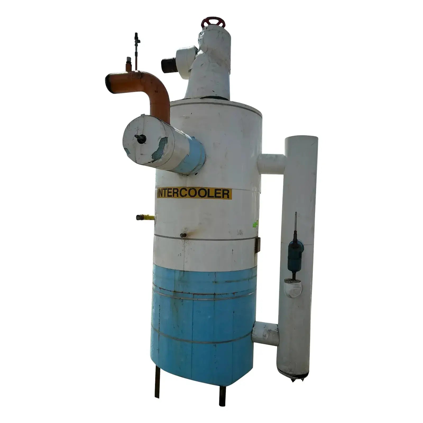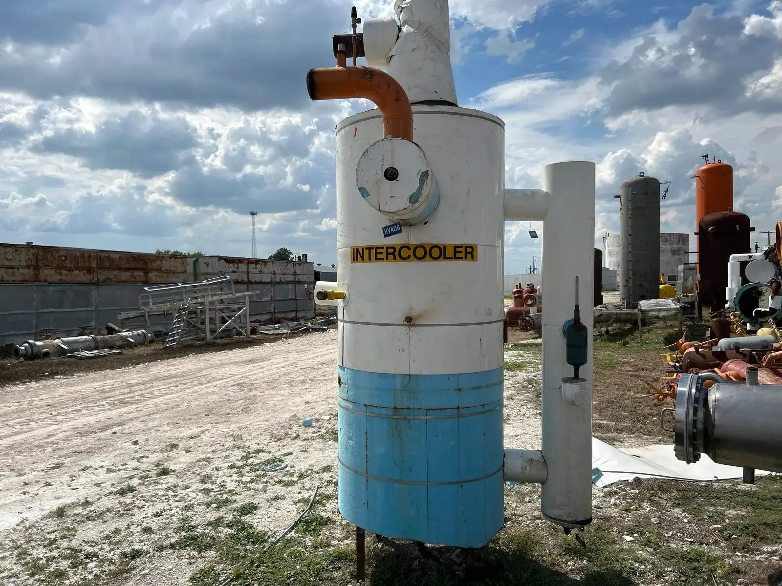Intercooler de Jordan Vessel Corporation. Certificado por la Junta Nacional de Industrial Service & Fabricators Inc.: 1022. N.º de serie: 95-1058. Modelo: VIC 36-96. Presión máxima de trabajo (MAWP): 250 PSI a 200 °F. Presión mínima de trabajo (MDMT): -20 °F a 250 PSI. Dimensiones del recipiente: 36" de diámetro x 96". Capacidad estimada: 530 galones.