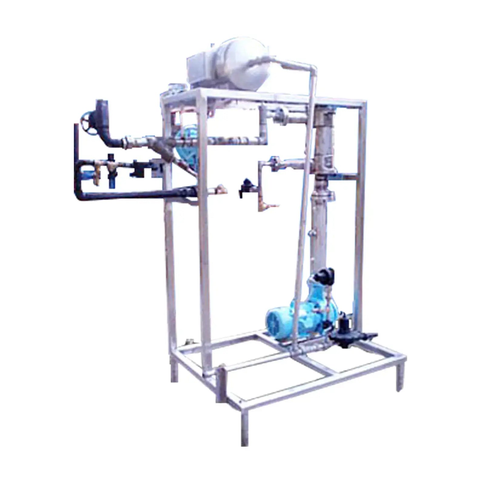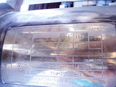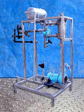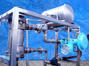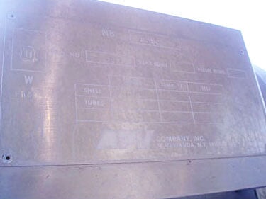 Juego de agua caliente de carcasa y tubo estándar americano. Número de serie: 85J15474-01. P/N: 5-162-08-018-001. Pase único. Número de tubos: 210. Dimensiones del tubo: 5/16 pulg. de diámetro. x 1 pie 6 pulgadas L. Superficie de transferencia de calor: aprox. 25,7 pies cuadrados. Volumen del tubo: 1,75 galones. MAWP del lado de la carcasa: 225 psi a 450 °F. MAWP del lado del tubo: 150 psi a 450 °F. Bomba centrífuga Worthington, Modelo: D824 con moto eléctrica Reliance de 5 hp. Tanque de la compañía de soldadura APV/Hebeler: 12 galones, MAWP: 75 psi a 300 °F. Fisher controla el actuador neumático. Posicionador electroneumático Fisher. Salidas: (1) 3 pulg. de diámetro. Puerto bridado 150 ANSI, (1) 1 pulg. de diámetro. Accesorio NPT (salida de condensado), (1) 2 pulg. de diámetro. puerto (salida de condensado). Dimensiones totales: 6 pies 11 pulgadas de largo x 4 pies 10 pulgadas de ancho x 8 pies 2 pulgadas de alto.