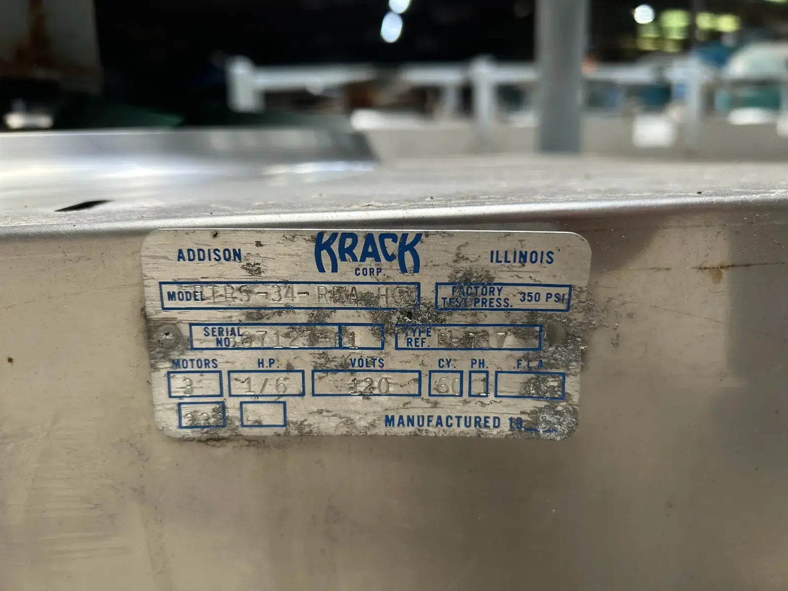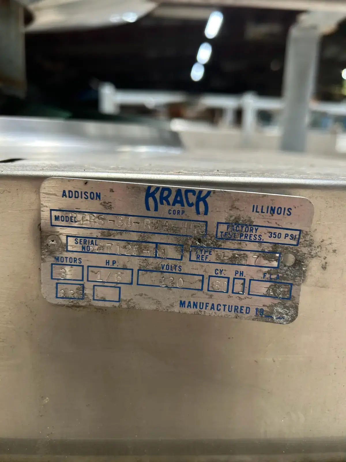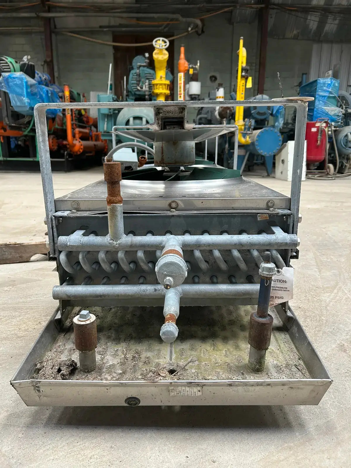 Evaporador enfriador Krack BTRS-34-RBA-HGU. 3 ventiladores, motores de 1/6 hp y 6000 CFM. Gabinete y bandeja de drenaje de acero inoxidable. Unidad diseñada para alimentación por expansión directa (amoníaco). 2.95 toneladas (35,400 Btuh a 10 grados de temperatura ambiente).
