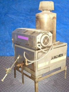 Lavadora a presión Karcher. Modelo HDS940. Presión máxima de descarga: 1500 psi (5 gpm). Funciona con gas natural. Equipado con bomba de lavado de alta presión, serpentines de calentamiento de quemadores, motor eléctrico. Controles y conexiones necesarios para uso con electricidad, gas natural o GLP y fuente de agua a presión. 230 Vca, 30 amperios. Motor: 5,0 hp, 330 gph, presión de 25 a 70 psi. (1) Entrada: 1 pulg. Salida: 1 pulg. Dimensiones totales: 44 pulg. de largo x 33 pulg. de ancho x 68 pulg. de alto.