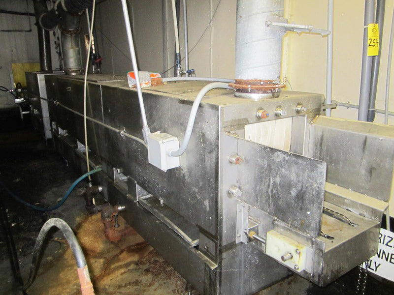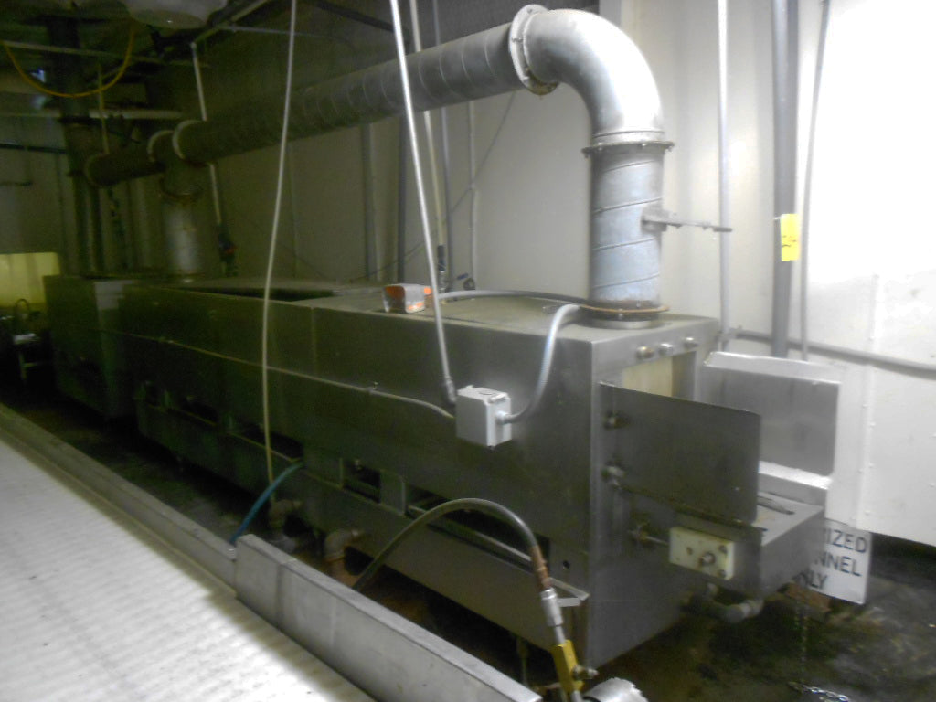 Lavadora de bandejas de acero inoxidable: 17 pulgadas de ancho x 23 pies de largo.
