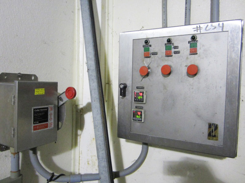 Lavadora de cacerolas de acero inoxidable. 17 pulgadas de ancho x 23 pies de largo. Activación del pedal. (7) pantallas de filtro. con controles.