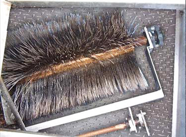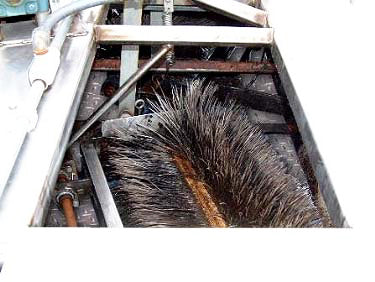 Lavadora de sartenes Lematic modelo 4x8, sin agua. S/N ninguno. Tornillos de montaje ajustables en las cuatro esquinas. (3) Motorreductores de 3/4 hp para accionamiento de cepillos. Unidad diseñada para montarse en un transportador (no incluida). Los cepillos eléctricos limpian los moldes para hornear cuando pasan debajo de la unidad en el transportador. Construcción de acero inoxidable. Dimensiones: 36 pulgadas de ancho x 85 pulgadas de largo x 21 pulgadas de alto.