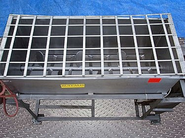 Licuadora de paletas FMC - 16 Cu. Pie. Construcción de acero inoxidable 304. La unidad está equipada con un diámetro de 23 pulgadas. x 52 pulg. L eje giratorio con paletas. Tamaño de la paleta: 7-3/4 pulgadas de largo x 4 pulgadas de ancho. Motor Lesson Washguard, 2 hp, 1719 rpm. 208-230/460 V, 60 Hz, trifásico. Unidad de velocidad variable. Panel de control Allen Bradley. Salidas: (1) 3 pulg. de diámetro. manguera de descarga. Dimensiones totales: 95 pulgadas de largo x 30 pulgadas x ancho 56 pulgadas de alto.