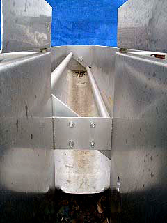 - Descripción de entradas y salidas de tanques: Inlets: (1) 2 in. dia. ball valve, (1) 42 in. L x 10-1/2 in. W sloped inlet. Outlets: (1) 3 in. dia. threaded.