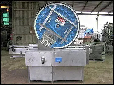 Limpiador-enjuagador Orbit de McBrady Engineering. Modelo: 401. S/N: W48-4475. Tamaño de botella/frasco: 2-1/2 pulg. de diámetro. x 4-1/4 pulgadas de alto. Diámetro de la boca de la botella/tarro: 1-7/8 pulgadas. Número de botellas: 24. Apertura/espacio libre máximo: 3 pulgadas de ancho x 4-1/2 pulgadas de alto (ajustable) . Motor eléctrico Reliance, 1 hp, 1730 rpm, 208-230/460 V, 4,0-4,4/2,2 amperios, 60 Hz, trifásico. Dodge 200 Tigear. Motor reductor de engranajes Boston. Transmisión en ángulo recto Boston Gear. Altura de entrada/salida del transportador: 37 pulg. Entradas: (1) 1/4 pulg. de diámetro. (suministro de aire), (1) 3 pulg. de diámetro. puerto. Salidas: (24) 1/8 pulg. de diámetro. (tubos de limpieza/ascendente), (1) 3 pulg. de diámetro. puerto. Dimensiones totales: 87 pulgadas de largo x 40-1/2 pulgadas de ancho x 91 pulgadas de alto (ACN500-750).