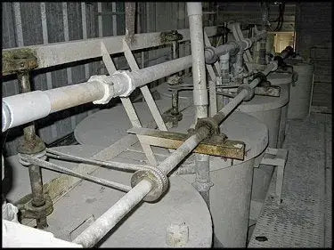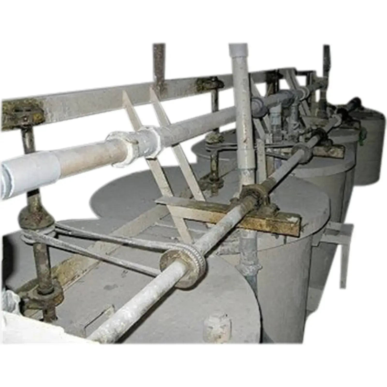 (4) Línea de tanques de mezcla de acero con agitación. Capacidad aproximada: 200 galones por tanque. 43 pulgadas de diámetro. x 39 pulg. de pared recta. Agitador: Motor no cerrado de 1-1/2 pulg. US Electrical Motors: 1-1/2 hp, estructura 184, 1500/1800 rpm, 208 V, 50 Hz, trifásico. Actualmente, los tanques están configurados para llenarse simultáneamente a través de un sistema de tubería de PVC superior de 2-1/2 pulgadas y cuentan con agitación impulsada por correa desde un eje impulsor de acero de 1-1/2 pulgada de longitud completa impulsado por motor para cada tanque. (2) entradas superiores por tanque: (1) 2-1/2 pulg. y 91) 2 pulg. roscadas. Utilizado anteriormente por Crane Plumbing en su proceso de fabricación de esmalte.