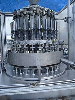 Llenadora de presión/tiempo rotativa líquida de 24 cabezales MRM Elgin. Versa-Relleno. Previamente llenado 12 oz. (355 mL) Botellas suaves. La unidad está equipada con (24) 3/8 pulg. de diámetro. llenar las boquillas. Las boquillas se activan mediante válvulas de aire neumáticas Bosch y cilindros de aire Bimba. Espaciado de válvulas: 4-1/2 pulg. Diámetro de apertura de la botella: 7/8 pulg. Ancho máximo de la botella: 3-1/2 pulg. Altura máxima de llenado: 7 pulg. Ajuste para operaciones de velocidad baja, alta y media. Bomba de desplazamiento positivo Waukesha 60 Universal II, modelo: 60 U2, S/N: 284361 01, entradas/salidas: (2) 2-1/2 pulg. Accesorios de línea S. Motor maestro Reliance Electric Duty, 7,5 hp, 1760 rpm, 230/460 V, 19,0/9,5 amperios, 60 Hz, trifásico. Versa-Fill es una llenadora rotativa de tiempo/presión de alta velocidad y precisión que es especialmente adecuada para llenar productos alimenticios de alta viscosidad como mayonesa, mantequilla de maní y condimentos, así como una variedad de productos más livianos. Altura de entrada/salida del transportador: 47 pulgadas. Entradas: (2) 2 pulgadas de diámetro. Accesorios de línea S, (2) 2-1/2 pulg. de diámetro. Accesorios de línea S. Salidas: (2) 2 pulg. de diámetro. Accesorios S-line (bandeja de goteo). Dimensiones totales: 95 pulgadas de largo x 88 pulgadas de ancho x 12 pies de alto.