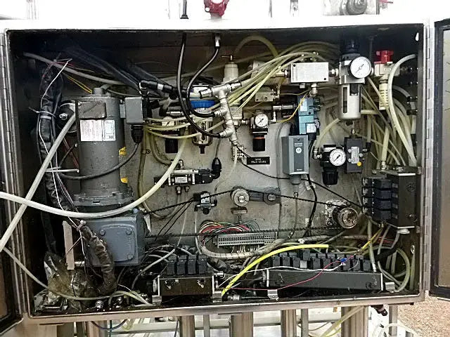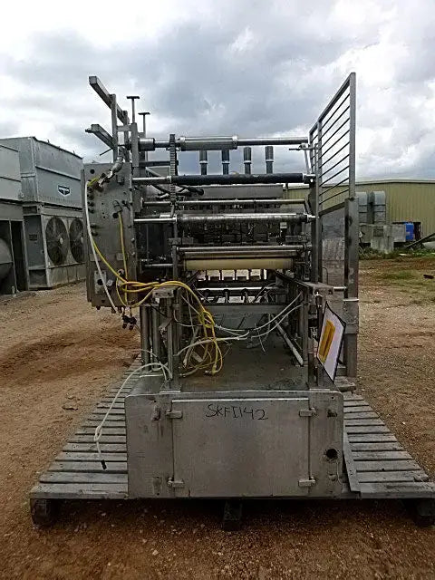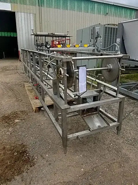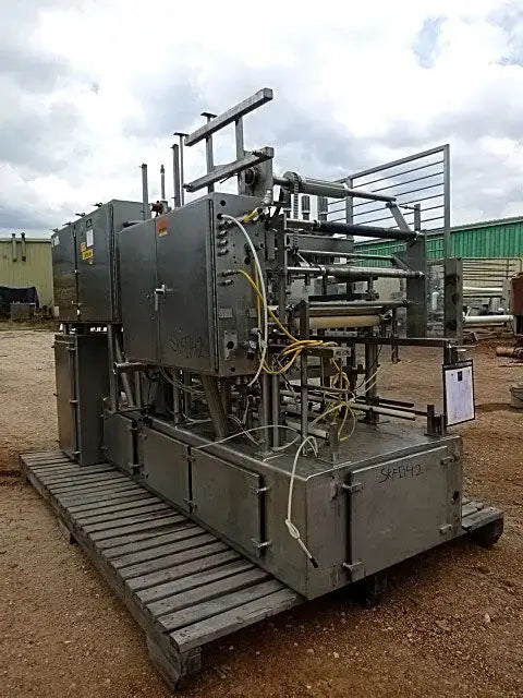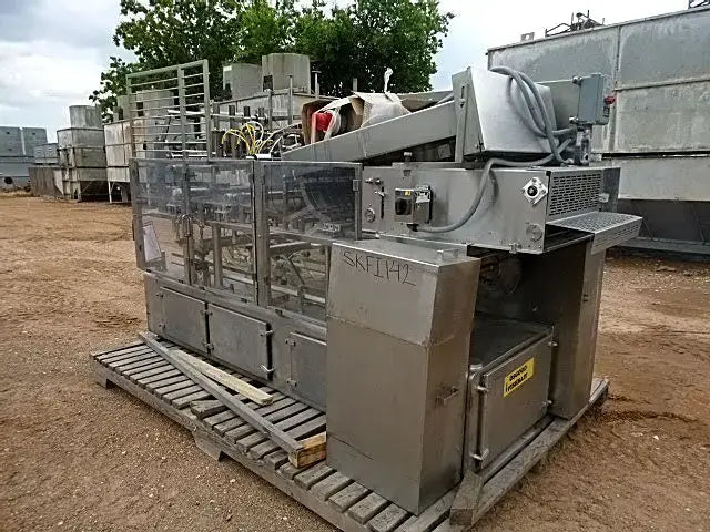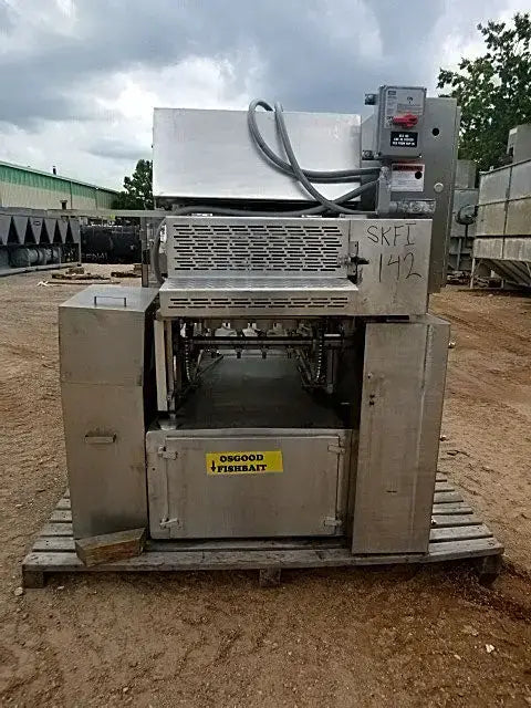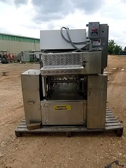 1998 Llenadora de vasos Osgood 4600. S/N: 30472. Capacidad: entre 80-120 tazas por minuto dependiendo del producto y volumen. Actualmente configurado para un relleno de 4 de ancho con platos redondos de acero inoxidable de 4,16 pulgadas de diámetro (ACN6750).