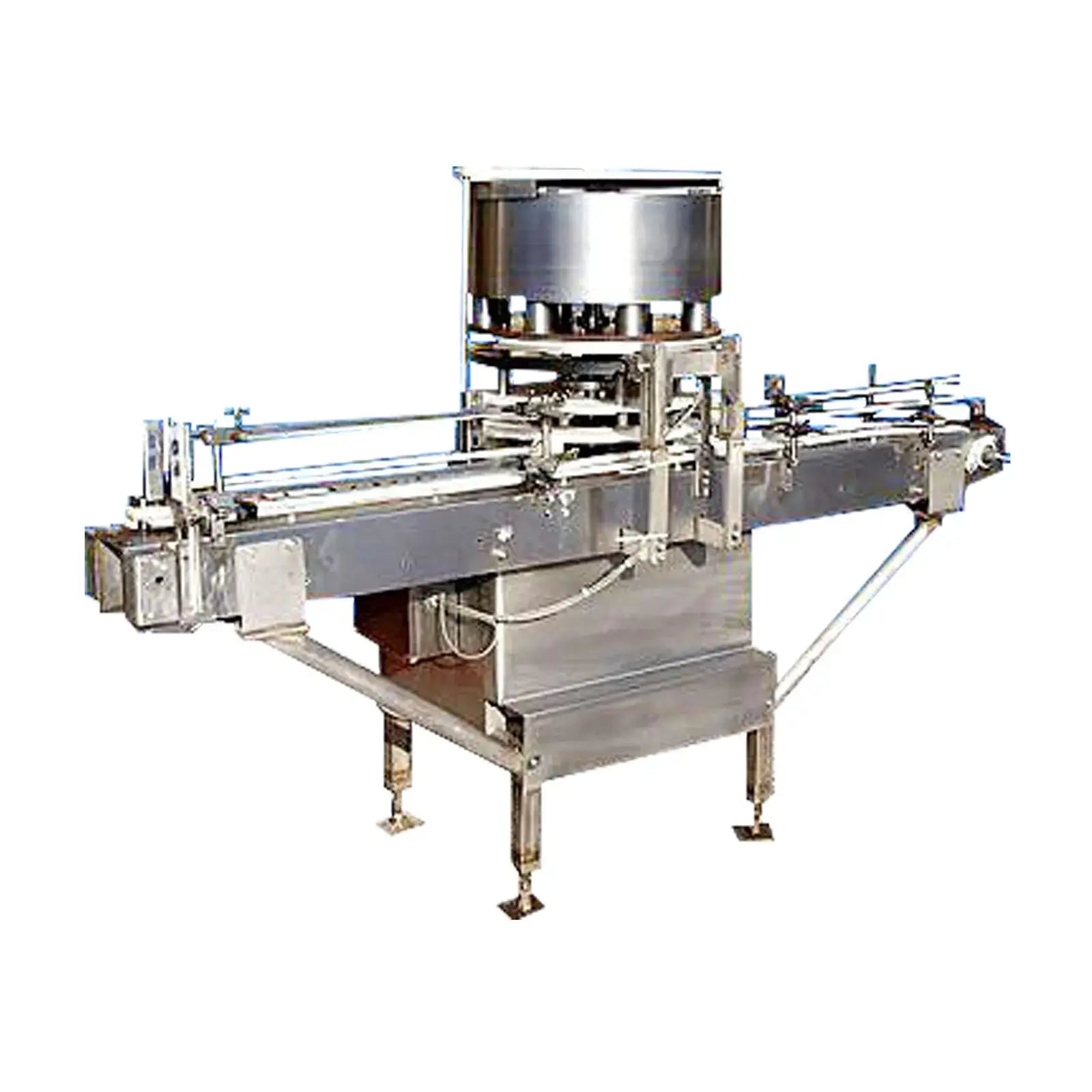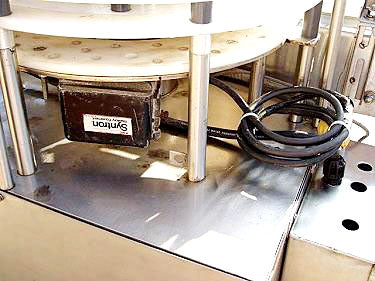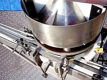 Llenadora volumétrica rotativa de 8 estaciones. Modelo: RCIR-A. Número de serie: P196-0837. Se utilizó por última vez para llenar botellas de chile en polvo de 7,4 oz (Trechas). Tamaño máximo de botella: 2 pulgadas de diámetro. x 7 pulg. H. Capacidad del tanque de llenado: 1,94 pies cúbicos. pies (14,5 galones). Ancho del transportador: 2-1/2 pulg. Altura de entrada del transportador: 36 pulg. Altura de salida del transportador: 37-1/2 pulg. Mini vigas Banner. Motor industrial Baldor, 1-1/2 hp, 1725 rmp, 60 Hz, 208-230/460 V, 5,3-5/2,5 amperios. SEW-Eurodrive Transmisión por engranajes, relación 3,98, 433 rpm finales. Dimensiones totales: 92 pulgadas de largo x 35 pulgadas de ancho x 62 pulgadas de alto.