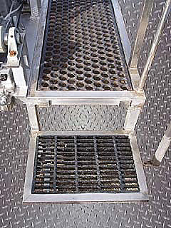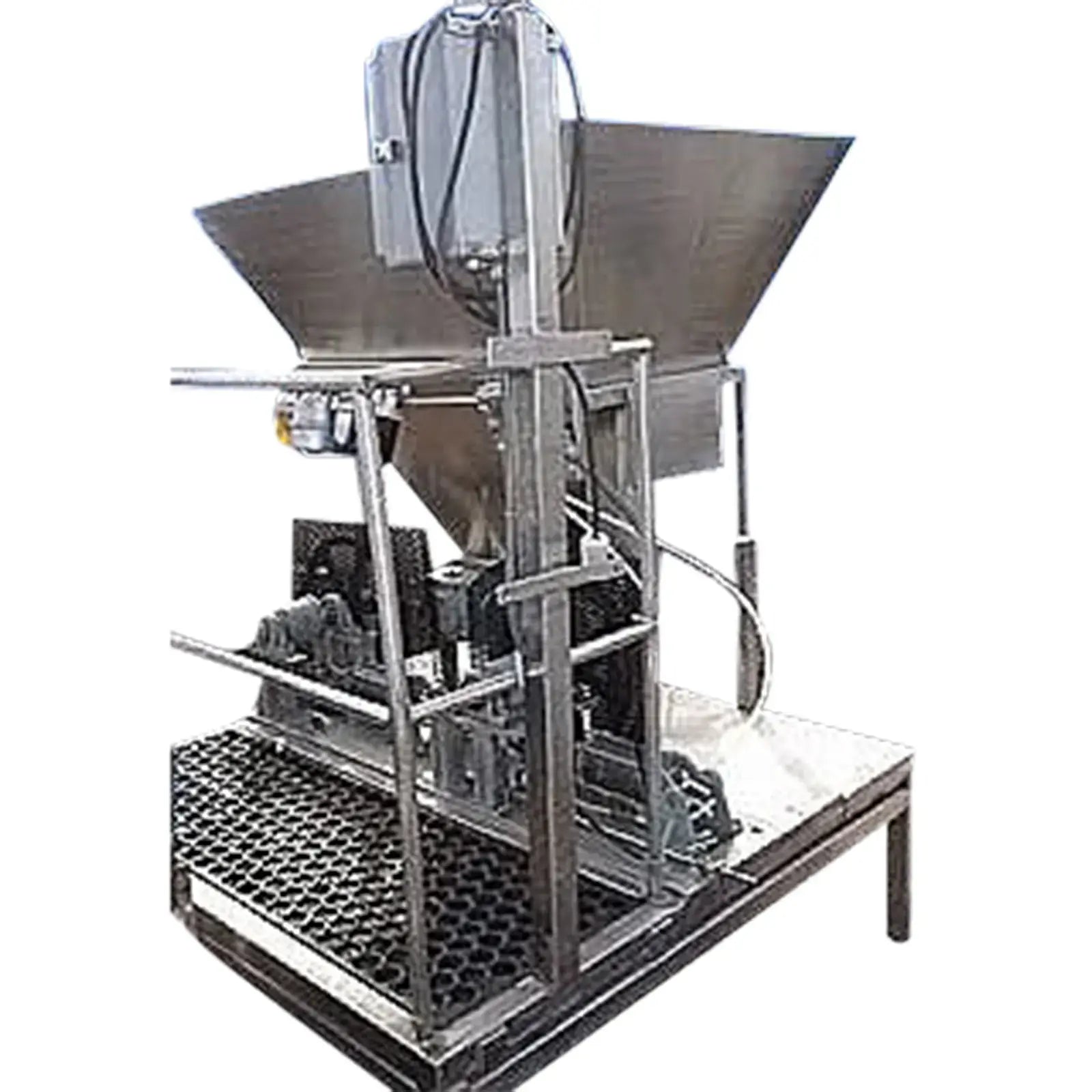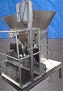 Llenadora/Depositante con Bomba Rotativa de Acero Inoxidable. La unidad cuenta con un tanque de alimentación de tolva con dos bombas de desplazamiento positivo de lóbulos rotativos. (2) Bomba St. Regis modelo 3RI, S/N: 10966, capacidad máxima de la bomba: 36 gpm. Velocidad máxima: 900 rpm, 6,4 GPM por 100 revoluciones. También cuenta con (2) pistones neumáticos, microinterruptor y un panel de control BA 1-4 de 120 V. Salidas de tolva: (2) 4-1/2 pulgadas de largo x 1-1/2 pulgadas de ancho. Salidas de descarga de la bomba: (2) 2 pulgadas de diámetro. Hilo Acme. Dimensiones totales: 73 pulgadas de largo x 61 pulgadas de ancho x 71 pulgadas de alto (H17).