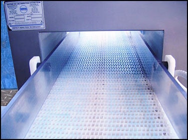 1997 / 2007 Loma - Sistema Detector de Metales Cintex. Un transportador y detector de 1997 con una caja de control modelo IQ2 actualizada en 2007. S/N: MH36900. Apertura/espacio libre: 10-1/2 pulgadas de ancho x 5-7/8 pulgadas de alto. Dimensiones de la cinta transportadora: 10-3/4 pulgadas de ancho x 7 pies 1 pulgada de largo. Altura de entrada/salida: 3 pies. 7 pulg. Rango de velocidad: 25 a 75 pies/min. Sensibilidad probada y clasificada en: acero inoxidable 316 de 3,0 mm ferroso, 2,5 mm no ferroso y 4,5 mm. Materiales de construcción: acero inoxidable 304, unidad de grado lavable. Las opciones de rechazo incluyen: bocina de alarma y parada al detectarse. Rango de temperatura: 14ºF (-10ºC) a 104ºF (40ºC). Motor Dayton de 1/2 CV. Dimensiones totales: 7 pies 1 pulgada de largo x 2 pies 3 pulgadas de ancho x 4 pies 9 pulgadas de alto (ACN175).