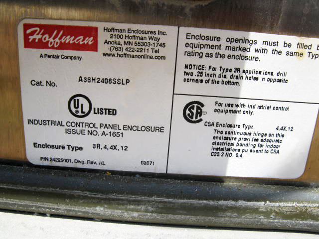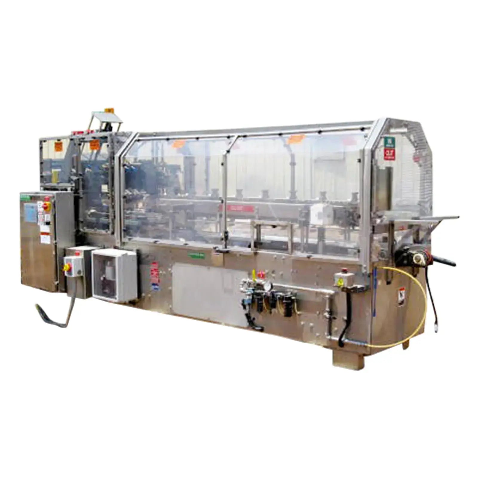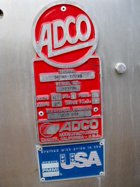 1992 ADCO Fabricación de fundas envolventes de acero inoxidable. Modelo: 105WA-170SS. Capacidad aproximada: 250 contenedores por minuto. Requisitos eléctricos/motor: 1/2 hp Nord, 1720 rpm, (230 V) / 460 V, 15 amperios, pies cuadrados: 1,15, accionamiento FLA: 7, 60 Hz, trifásico. Los controles incluyen: (2) controlador de motor giratorio Hubbell Bryant, programa Electro Cam Plus™ serie 5000. Interruptor de límite industrial en gabinete Hoffman de acero inoxidable, tipo: 3R, 4, 4x, 12. Las características incluyen: eje de servicio pesado y transmisión interna de caja de cambios, multi Alimentador de cartón giratorio de cabezal, control de velocidad automatizado coordinado con el suministro de producto y construcción de acero inoxidable lavable. Dimensiones totales: 24 pies de largo x 5 pies 1 pulgada de ancho x 6 pies 7 pulgadas de alto (ACN2500).