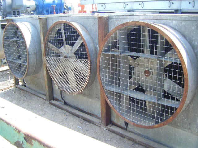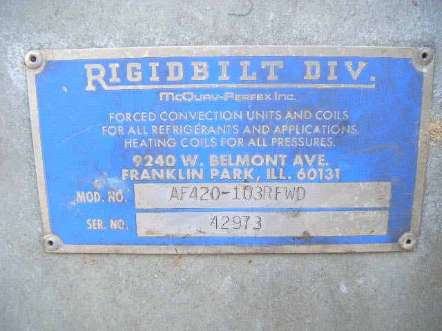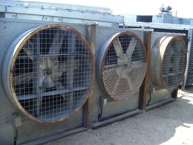 (2) McQuay – Sopladores evaporativos de freón de 3 ventiladores de la División Rigidbilt de Perfex, Inc. Modelo: AF420-103RFWD. Usado por última vez con R22. Dimensiones totales para (1) unidades: 17 pies de largo x 5 pies 5 ½ pulgadas de ancho x 6 pies 7 pulgadas de alto (H15).