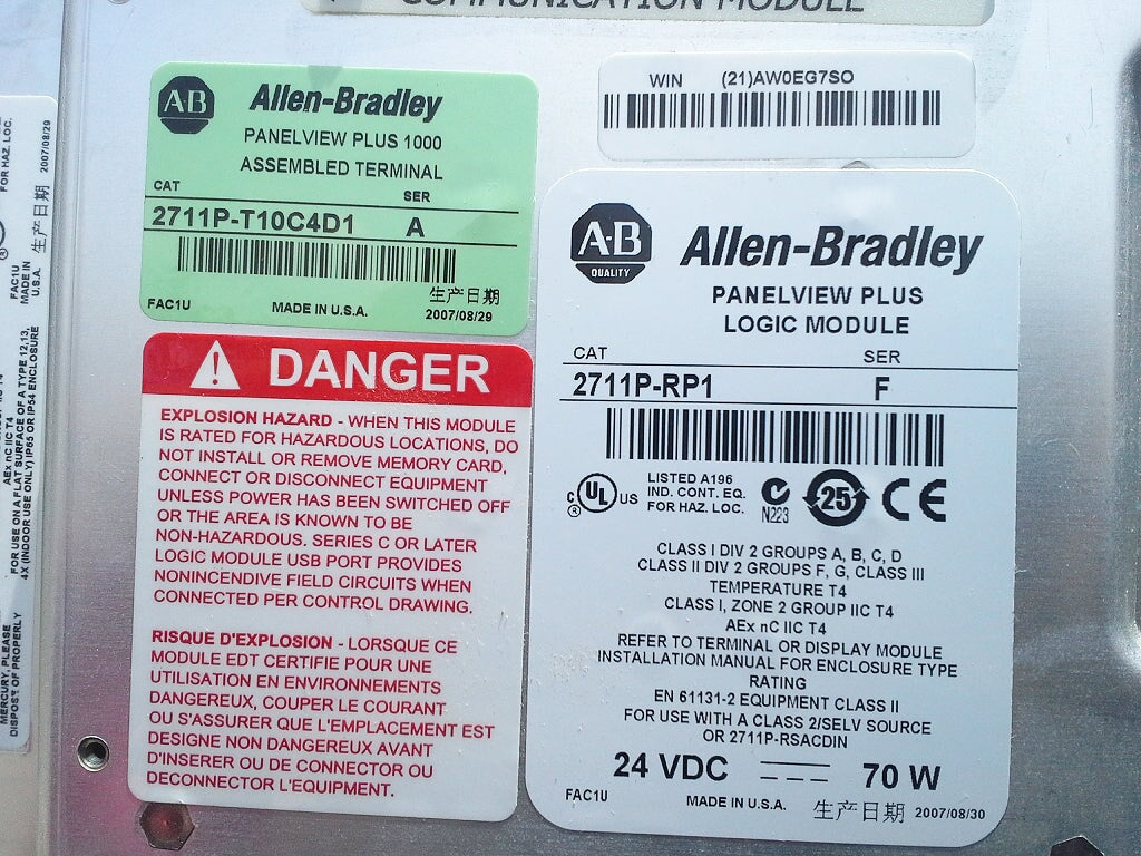 Panel de control Vilter: SO: 57276, Dibujo: 525 0044, 120 V, monofásico. Allen-Bradley Panelview Plus 1000: Cat: 2711P-T10C4D1, Ser A, fabricado en EE. UU. Módulo lógico Panelview Plus: Cat 2711P-RP1, Ser F, 24 VCC. Módulo de pantalla táctil a color Panelview Plus 1000: Cat 2711P-RDT10C, Ser B. Panel de control industrial cerrado con certificación UL No. BL-558787. Condición: sin usar, instalado originalmente en un compresor de tornillo Vilter que se instaló pero nunca funcionó. Cantidad disponible: 1.
