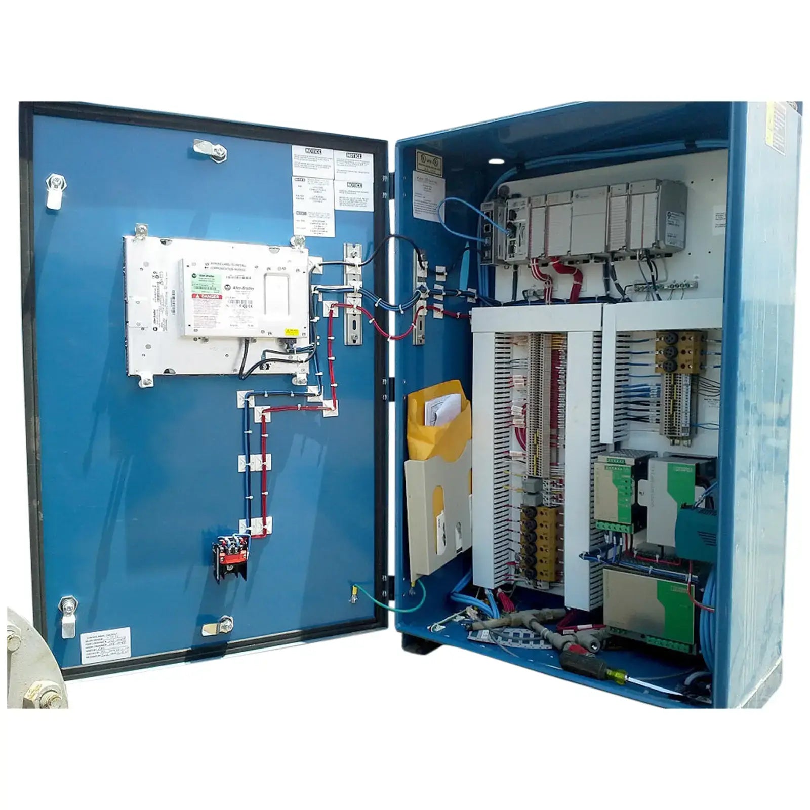 Panel de control Vilter: SO: 57276, Dibujo: 525 0044, 120 V, monofásico. Allen-Bradley Panelview Plus 1000: Cat: 2711P-T10C4D1, Ser A, fabricado en EE. UU. Módulo lógico Panelview Plus: Cat 2711P-RP1, Ser F, 24 VCC. Módulo de pantalla táctil a color Panelview Plus 1000: Cat 2711P-RDT10C, Ser B. Panel de control industrial cerrado con certificación UL No. BL-558787. Condición: sin usar, instalado originalmente en un compresor de tornillo Vilter que se instaló pero nunca funcionó. Cantidad disponible: 1.