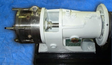 Molino coloidal Charlotte, modelo SD5, S/N 2527, cabeza de acero inoxidable, conexiones de asiento biselado de 1 pulg., accionamiento 7-1/2 hp 230/460 voltios 3500 rpm, base de acero dulce pintada, dimensiones totales 50 pulg. L x 18 pulgadas de ancho x 18 pulgadas de alto