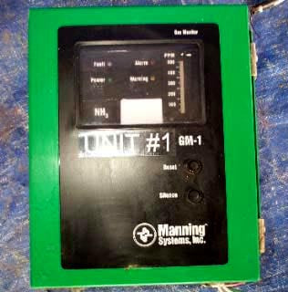(4) Monitores de amoníaco. Modelo GM-1. Configuración de advertencias y alarmas. Diseño a prueba de fallos. Pantalla de gráfico de barras LED. Clasificación de entrada: 1 amperio a 120 VCA, 60 Hz; Clasificación de contacto del relé: 3 amperios a 120 VCA. N/S 200006-168-GM1-2.(ACN12).