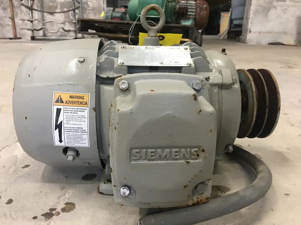 Motor Siemens SD100 (5 HP, 1755 RPM, 208-230/460 V) Número de serie: B12T3014SE 96. 5 HP. RPM del motor: 1755. Voltaje del motor: 1755. Voltaje del motor: 208-230/460. Amperios del motor: 14,5/7,2. Hercios del motor (HZ): 60. Fases del motor: 3. Tamaño del bastidor del motor: 184T. Dimensiones de envío (pulgadas): 18x16x11. Peso (libras): 114
