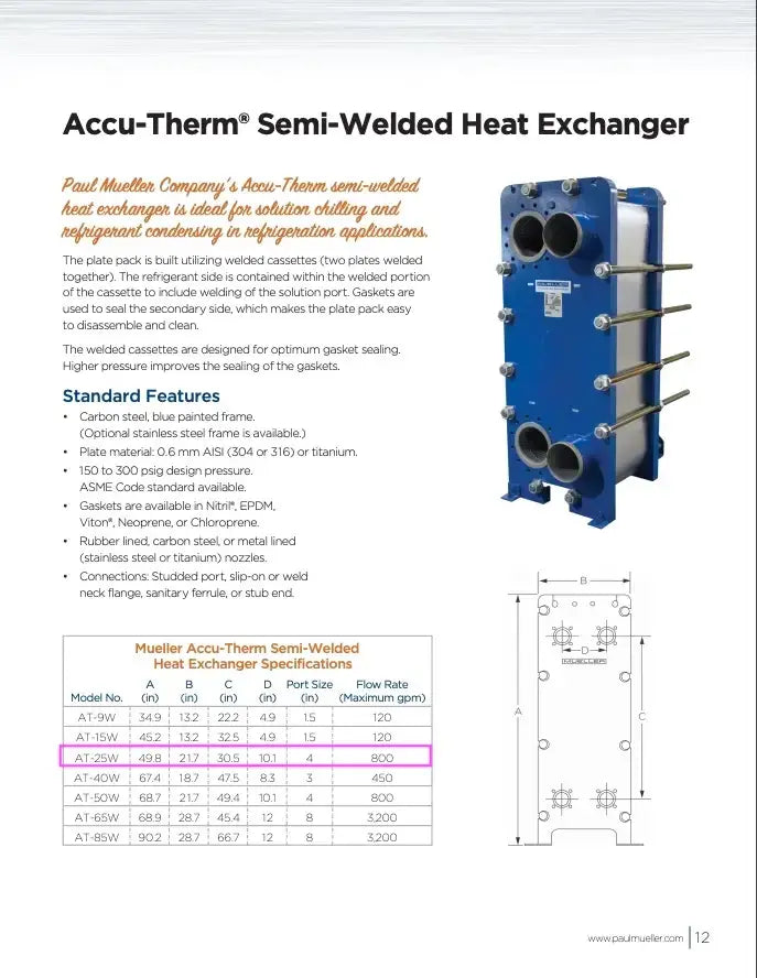 Intercambiador de calor de placas semisoldadas Accu-Therm AT25W de Mueller