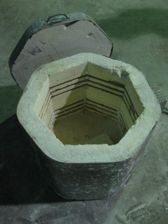 Norris Kiln Co. Pequeño horno octogonal. 230 V, 30-15 amperios, 3000 peso. Dimensiones interiores: 15 pulgadas de largo a 15 pulgadas de ancho x 13 pulgadas de alto. Dimensiones totales: 2 pies de largo x 2 pies de ancho x 1 pie. 6-1/4 pulgadas de alto.