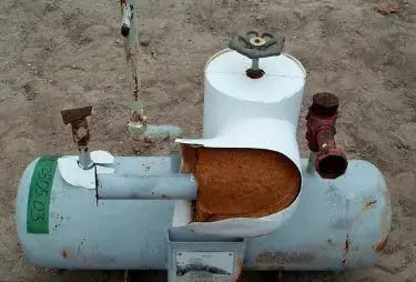 Olla de recuperación de aceite Morfab. Capacidad aproximada: 12 galones. Clasificación ASME de 250 lb -20 a 650 °F y 100 lb a -50 °F. Úselo con un acumulador de baja temperatura con amoníaco. Incluye válvulas de entrada y salida y válvula de alivio única. El tamaño de 10 x 36 pulgadas incluye base de soporte en ángulo. Dimensiones totales: 51 pulgadas de largo x 16 pulgadas de ancho x 32 pulgadas de alto.
