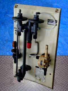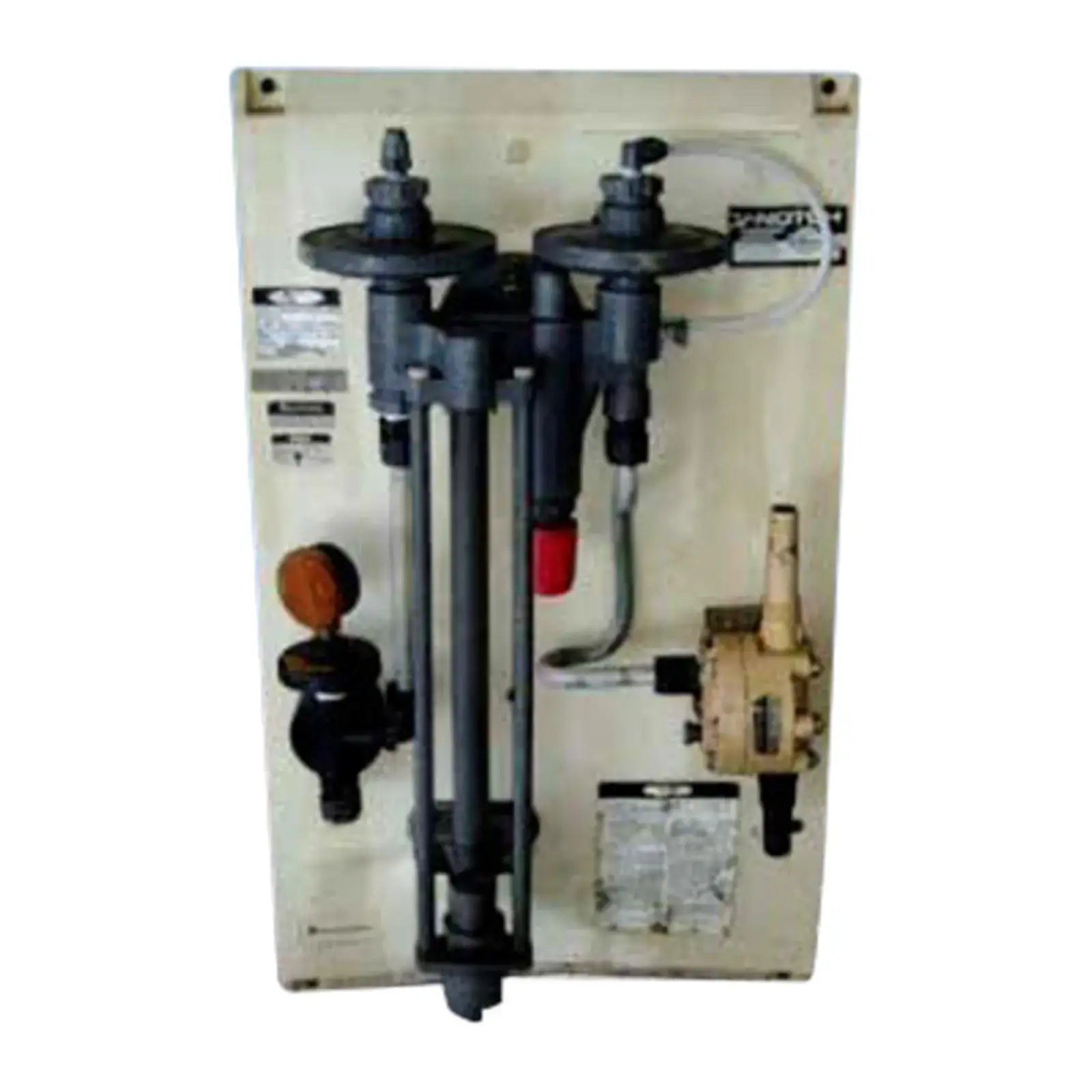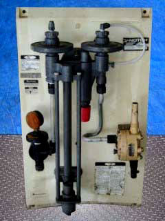 Orificio variable con muesca en V de Wallace & Tiernan. (1) Diafragma sensor de presión. Entradas: (1) 1/2 pulg. de diámetro. ajuste de púas. Salidas: (1) 1/2 pulg. de diámetro. accesorio de compresión, (1) 3/4 pulg. de diámetro. ajuste de púas. Dimensiones totales: 17 pulgadas de largo x 1 pulgada de ancho x 29 pulgadas de alto.