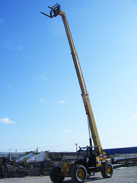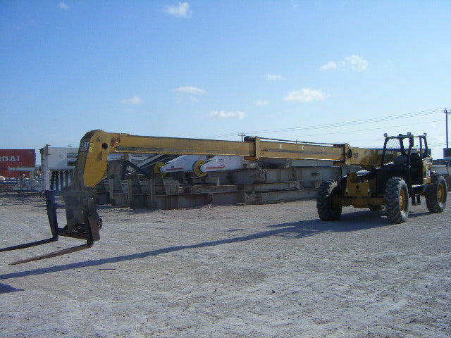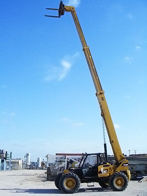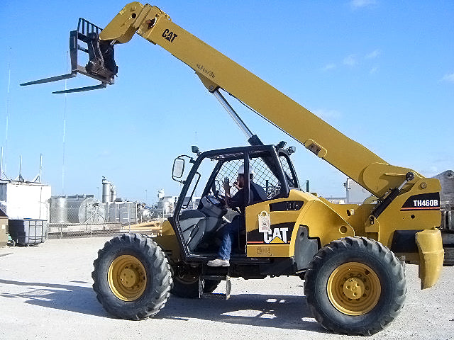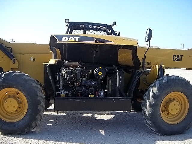 Carretilla elevadora telescópica diésel Caterpillar 4x4x4 2005. Modelo: TH460B. Clasificación de capacidad de carga: 9000 lb. Brazo telescópico de tres secciones hasta una distancia total de 46 pies. Altura máxima de elevación: 44 pies 3 pulgadas. Alcance horizontal máximo: 30 pies 2-½ pulgadas. Capacidad en alcance máximo: 1800 libras. Motor: diésel de 4 cilindros. Tamaño de neumáticos: 14.00-24TG, Volante de inercia: 94,9 hp. Esta unidad cuenta con: luces de trabajo opcionales, capota de seguridad, carro inclinable, tres modos de dirección para mejorar la maniobrabilidad, sistema hidráulico auxiliar y nivelación hidráulica. Los manipuladores telescópicos Caterpillar ofrecen cabinas espaciosas y asientos con suspensión para mayor comodidad. El joystick de una sola palanca contiene todas las funciones de la pluma para una fácil operación. Dimensiones totales (completamente retraído): 26 pies de largo x 8 pies 7 pulgadas de ancho x 8 pies 3 pulgadas de alto. Lectura del contador horario: 2732 horas (ACN892).