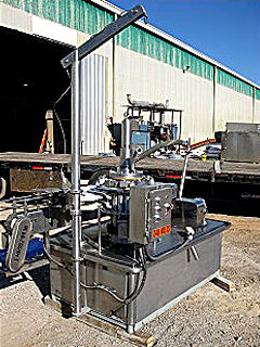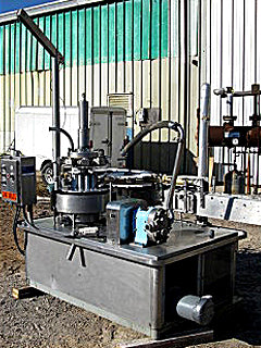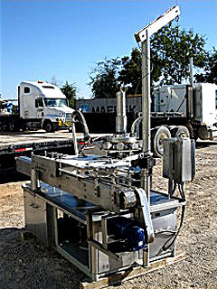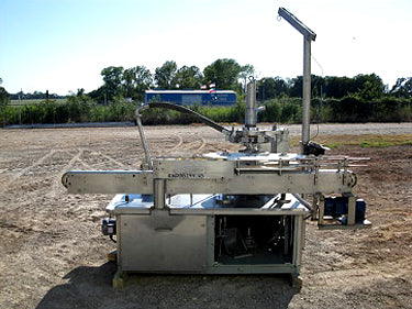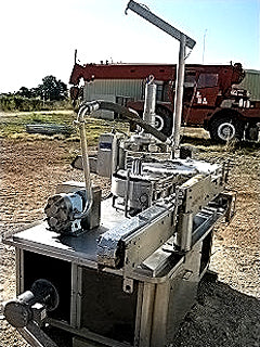 Pacific Packaging Machinery, Inc. Llenadora a presión rotativa de 10 estaciones. Capacidad de rendimiento: 180 contenedores por minuto dependiendo del tamaño del contenedor. Diámetro máximo de la botella: 4 pulg. Altura máxima de la botella: 6-1/2 pulg. Altura del transportador: 37-3/4 pulg. Correa de enlace metálico: la longitud útil es 96 pulg. x 3,25 pulg. De ancho (la longitud total de la correa es 204 pulg. . Bomba de desplazamiento positivo Waukesha: modelo: P25. Esta máquina inicialmente llenaba contenedores de margarina de 16 onzas. Dimensiones totales: 8 pies 10 pulgadas de largo x 4 pies 6 pulgadas de ancho x 8 pies 4 pulgadas de alto (XMR36a) (ACN1925-74) (H).