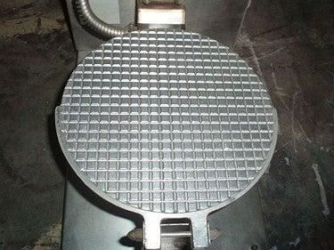 Panadero de cono gigante de DCA Food Industries. Modelo: B0020-GB. Número de serie: BGB-76-01311. Diámetro de la superficie para hornear: 8-1/2 pulgadas. Esto es para hacer conos de waffle de helado. Alimentación: 120 V, 8,3 amperios, 50/60 Hz, monofásica. Dimensiones totales: 1 pie 10 pulgadas de largo x 10 pulgadas de ancho x 10 pulgadas de alto.