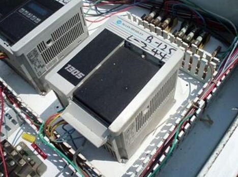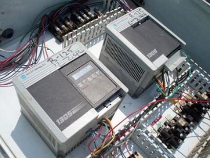 Panel de control Hoffman. Inversor de frecuencia variable Allen-Bradley de 2 HP, modelo: 1305, S/N: 1JAM3ZP3, cat. No: 1305-AA08A, Serie: C, entrada: 200-240 V, 11, 6 amperios, 50-60 Hz, 4600 VA, salida: 200-230 V, 8 amperios, 0-400 Hz. Terminal de integración de industrias del programa Allen-Bradley, cat. No: 1201-HAP, Serie: B, entrada (CC): 12 V, 0,110 amperios. Dimensiones totales: 2 pies 7 pulgadas de largo x 1 pie de ancho x 3 pies 2-1/2 pulgadas de alto.
