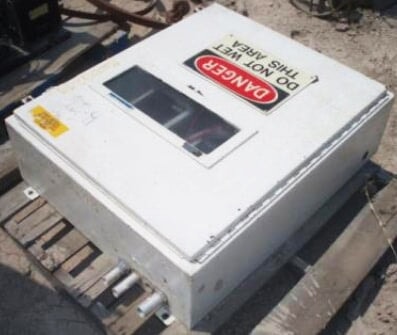 Panel de control Hoffman. Inversores de frecuencia variable Allen-Bradley de 2 HP, modelo: 1305, S/N: 1JAP54P3, cat. No: 1305-AA08A, Serie: C, entrada: 200-240 V, 11, 6 amperios, 50-60 Hz, 4600 VA, salida: 200-230 V, 8 amperios, 0-400 Hz. Terminal de integración de industrias del programa Allen-Bradley, cat. No: 1201-HAP, Serie: B, entrada (CC): 12 V, 0,110 amperios. Dimensiones totales: 2 pies 7 pulgadas de largo x 1 pie de ancho x 3 pies 2-1/2 pulgadas de alto.