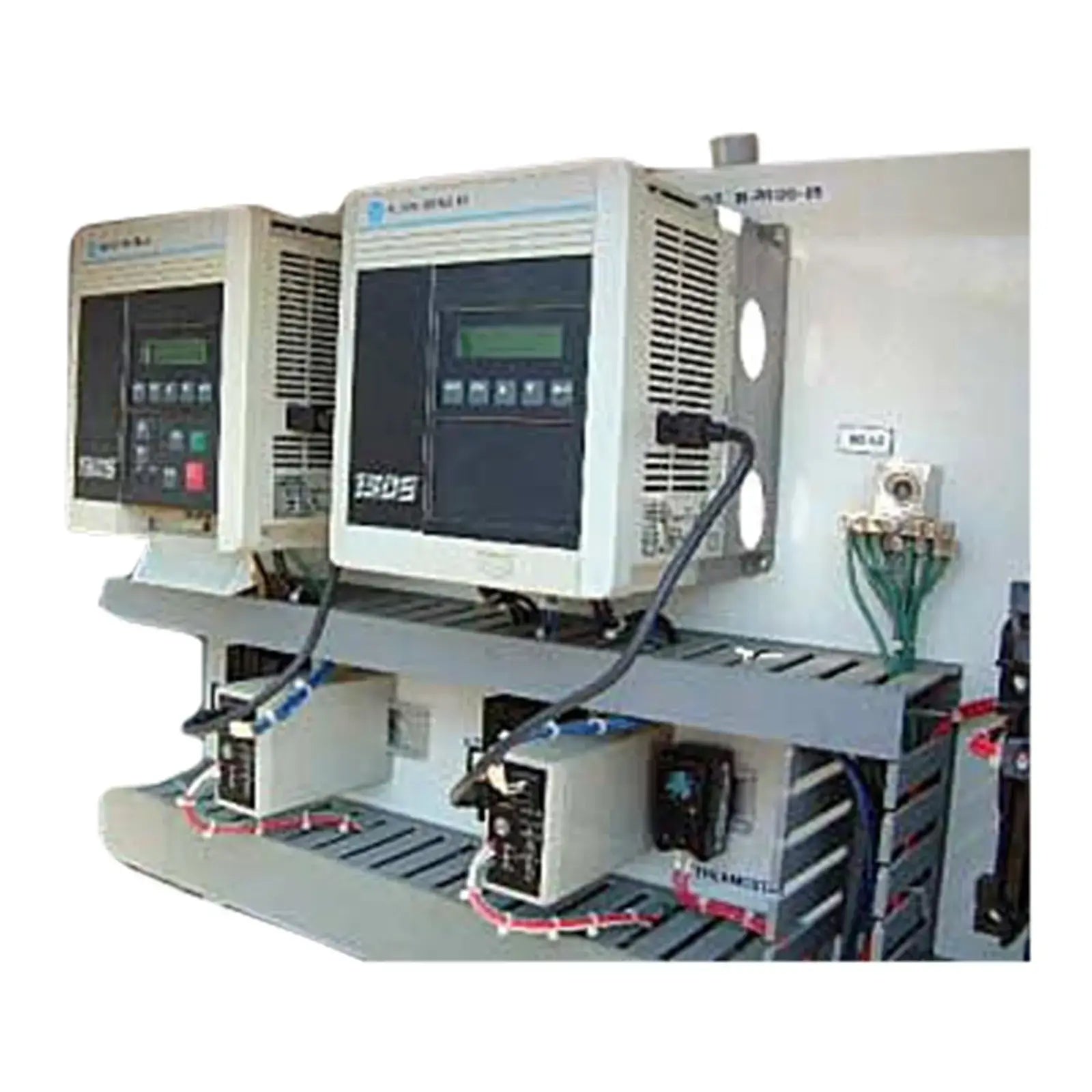 Panel UFD, Laboratorios Underwriters (Hoffman). Número: Y143059. N.º de gato A-48HS3712SSLP. Tipo de gabinete: 4, 4x, 12. Tiene 5 variadores de CA de frecuencia ajustable (1/2 - 5 hp, 0,37 - 4 KW). Unidades Allen Bradley CAt No. 1305-BA06A, 380-460 voltios, 5,8 amperios, 50/60 Hz, 4500 VA (entrada), 380 - 460 voltios, 6,0 amperios, 0-400 Hz (salida). Potencia del motor 2,2 KW, 3 hp, refrigerador de gabinete compacto Modelo CC400FP-115, SS, SS, SW. S/N 2538, Productos Noren. Dimensiones totales 18-½ pulgadas de ancho, 38 pulgadas de largo, 60 pulgadas de alto (H17).