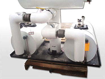 Paquete de bomba de condensado Armstrong 2004. Modelo: DPT-308RP. Número de serie: 04055-01. Capacidad máxima con motor de vapor: 23,000 lbs./hr con 125 psig de presión motriz y 15 psig de contrapresión. Capacidad máxima con motor neumático: 26,200 lbs./hr con presión motriz de 75 psig y 15 psig de contrapresión. El paquete de bomba de condensado se utiliza para recolectar y devolver el condensado de áreas remotas de la planta. Como el vapor producido por una caldera se utiliza en toda la planta y eventualmente se convierte en agua caliente o condensado, la bomba lo devuelve al tanque de reposición más cercano a la caldera, donde se puede recuperar, tratar químicamente y reutilizar en la caldera. Esta unidad de bomba mecánica funciona con vapor o aire, por lo que no necesita electricidad. Los beneficios del paquete de bombas mecánicas incluyen: ahorros en costos de producción a medida que se recupera el agua, diseño de tuberías con espacio reducido, mano de obra de campo minimizada, menores errores de instalación y menos percances de seguridad. Dimensiones totales: 5 pies 1 pulgadas de largo x 5 pies de ancho x 5 pies 10 pulgadas de alto (ACN119a)