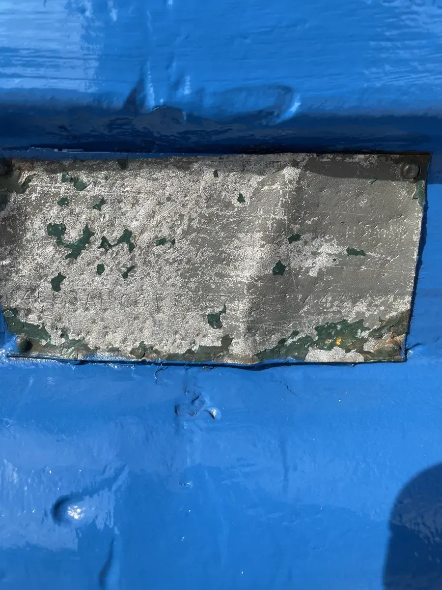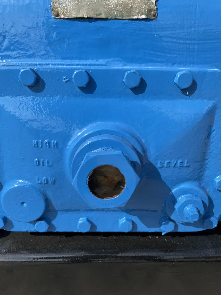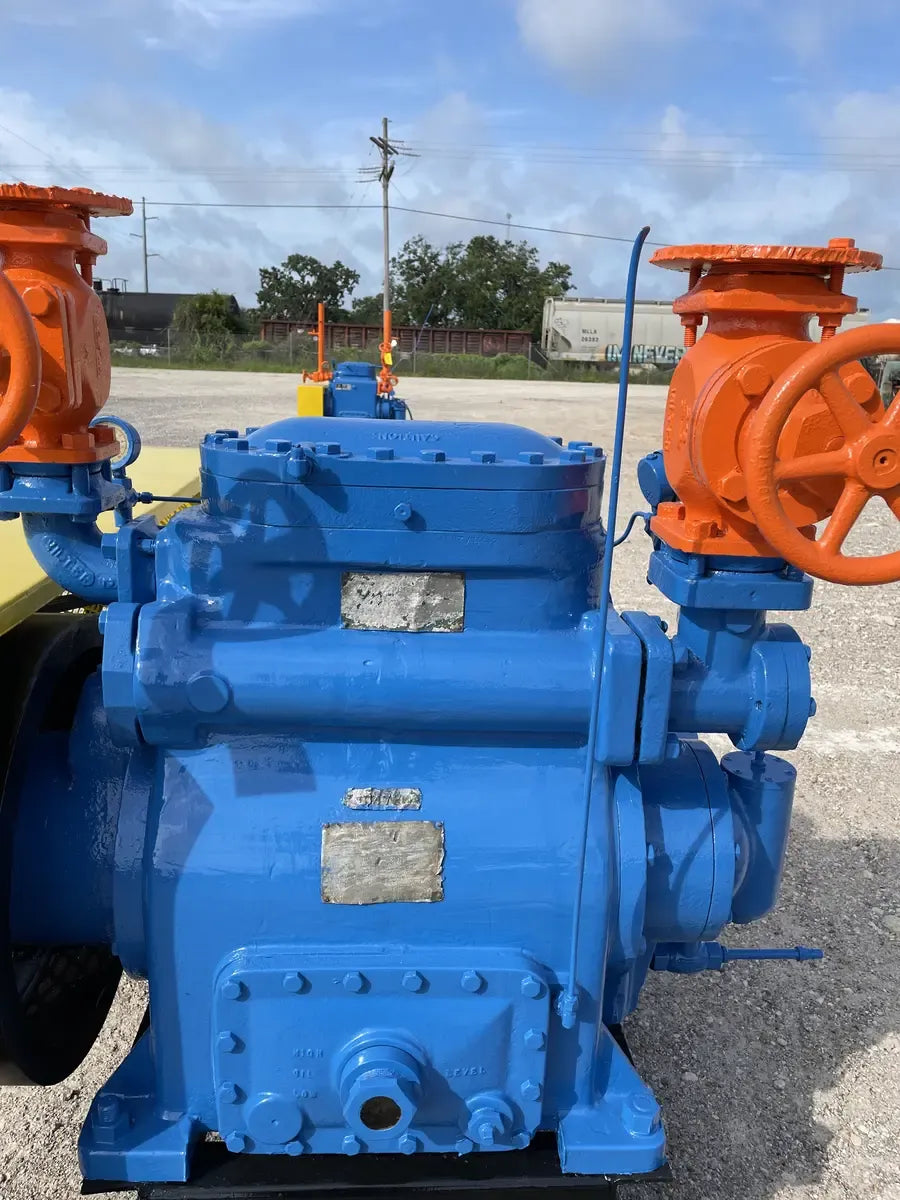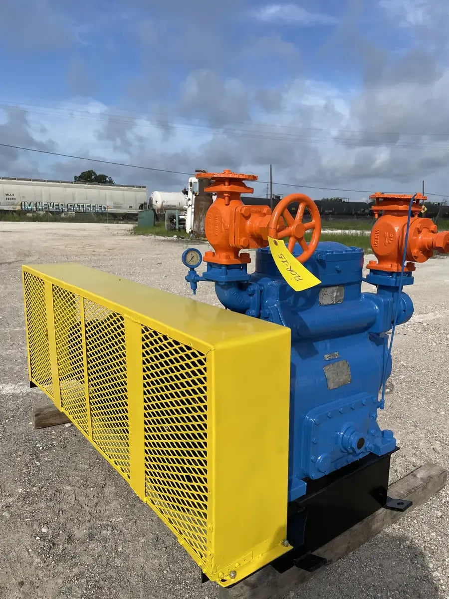 Compresor alternativo de 2 cilindros Vilter 442. Tamaño: 442. La placa de datos no se puede leer. Número de cilindros: 2. El compresor ha sido recién pintado. Motor eléctrico Lincoln - FR: 286T, RPM: 1765, Serie: 1656176, HP: 30, PH: 3, Voltios: 230/460, AMPS: 74/37, Hz: 60, Factor de servicio: 1,15.