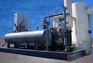 Paquete de compresor alternativo de amoníaco Mycom de 8 cilindros. Modelo: N8B. S/N: 10804. Presión de fuga alta/baja: 313-185 psig. Presión hidrostática alta/baja: 470-470 psig. Motor Lincoln, 125 hp, 1770 rpm, 230-460 V, 288-144 amperios, 60 Hz, trifásico. Entradas: (1) 2 pulg. de diámetro. tubo de succión con una brida de 4-1/2 pulgadas de largo x 4-1/2 pulgadas de ancho y (4) 1/2 pulgadas de diámetro. orificios de conexión a una distancia de centro a centro de 3 pulg. Salidas: (1) 4 pulg. tubo de descarga con una brida de 7 pulgadas de largo x 7 pulgadas de ancho y (4) bridas de 1 pulgada de diámetro. orificios de fijación a una distancia de centro a centro de 5 pulgadas. Dimensiones totales: 15 pies 8 pulgadas de largo x 92 pulgadas de ancho x 10 pulgadas. h.