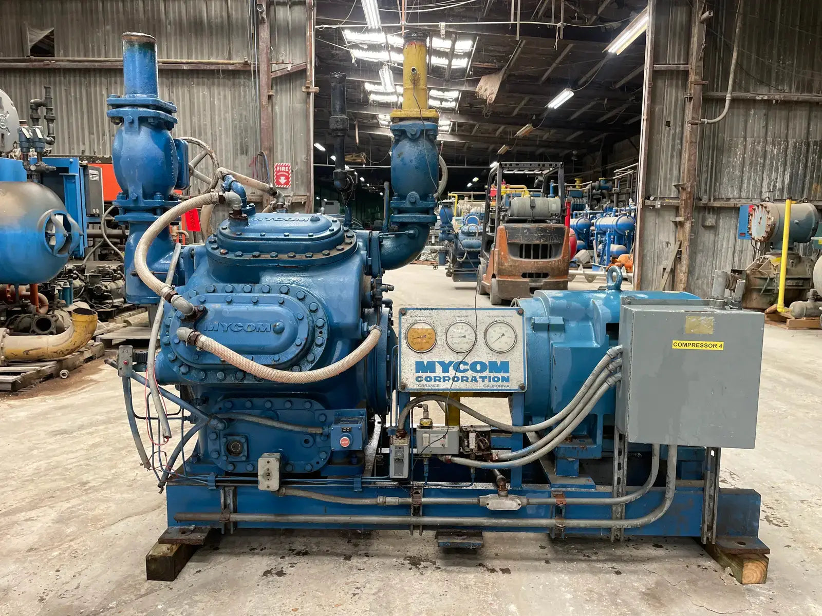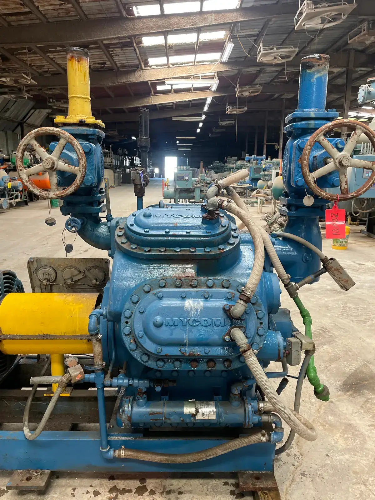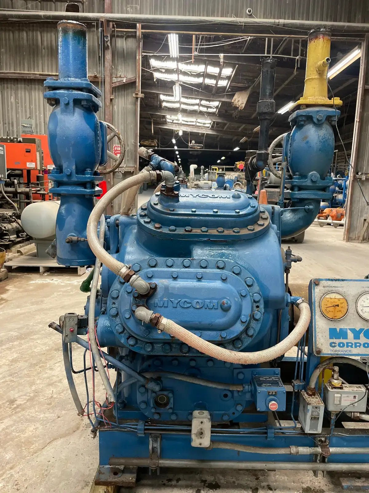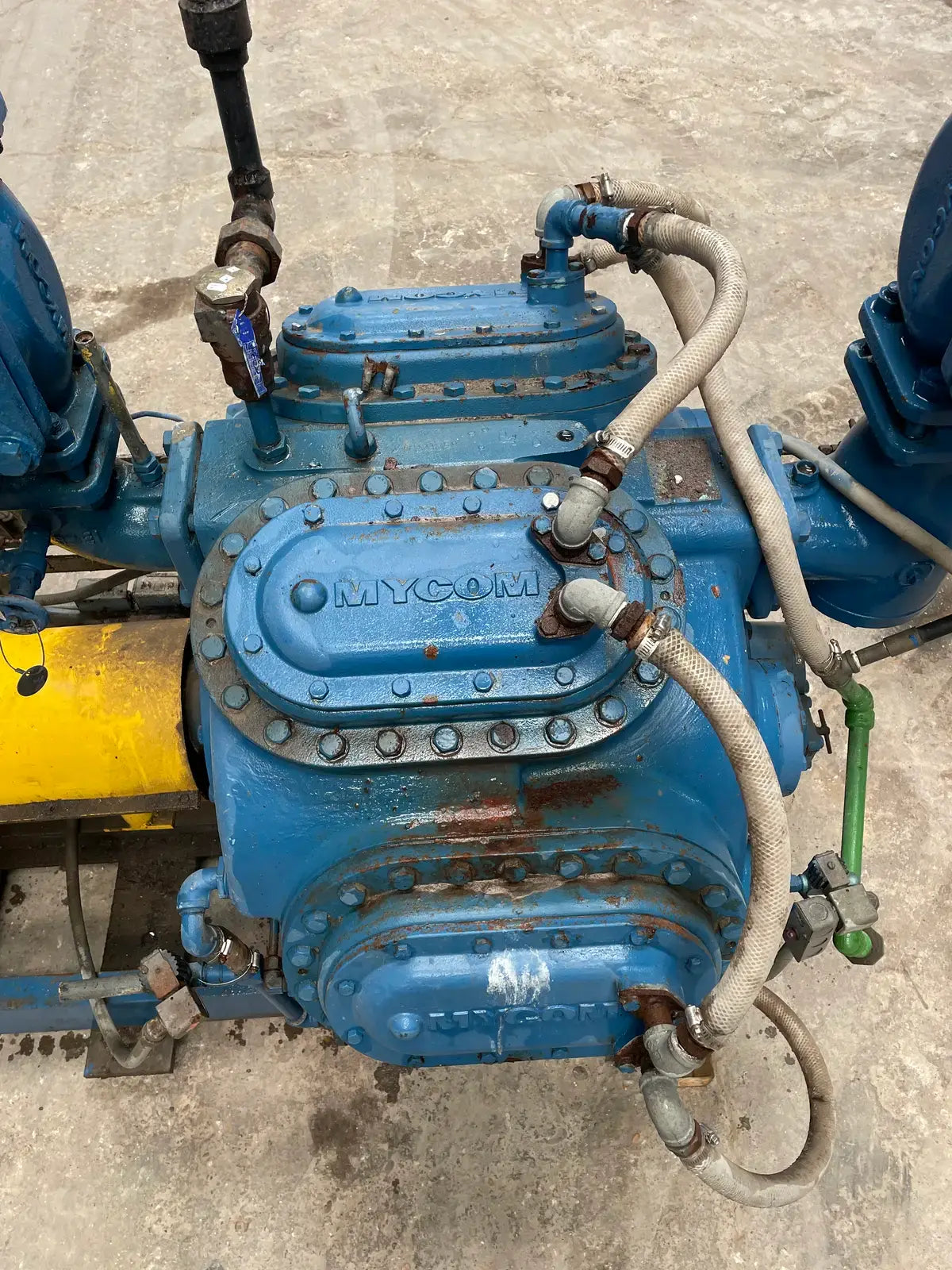 Paquete de compresor alternativo Mycom de 8 cilindros. Número de cilindros: 8. Velocidad máxima: 1200. Conexiones: Succión: 4 pulg. Descarga: 3,5 pulg.
