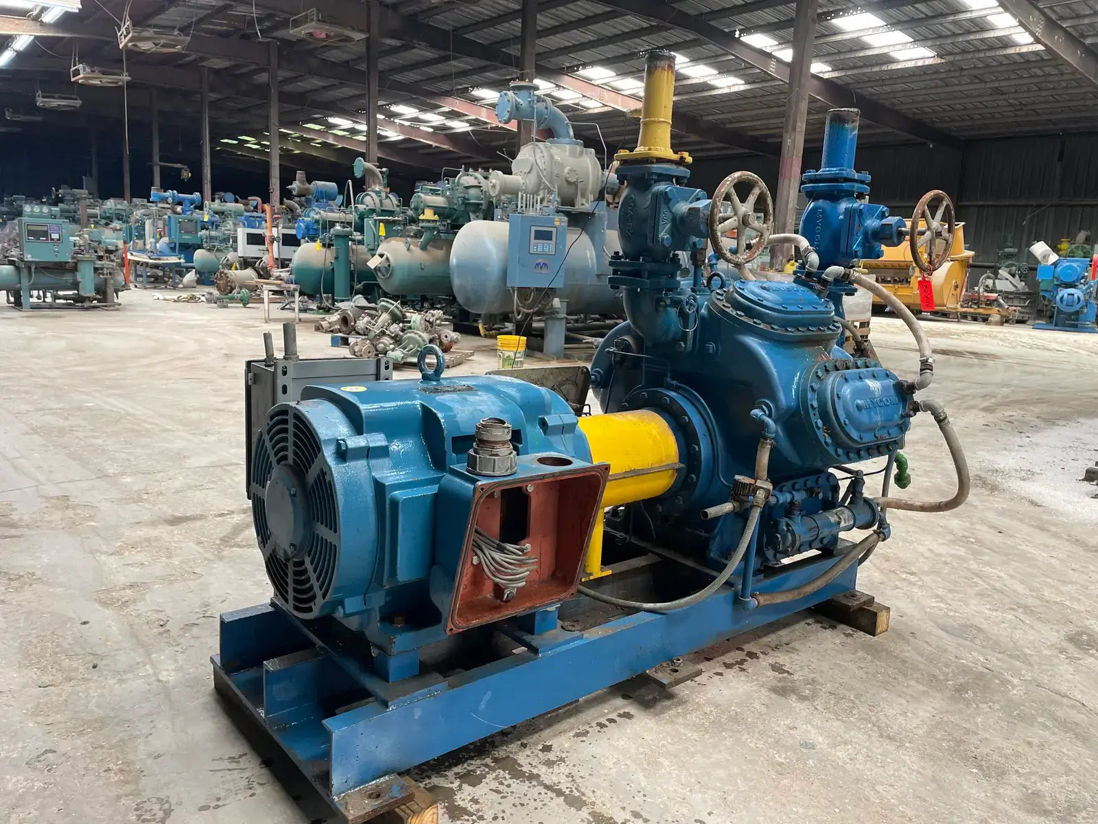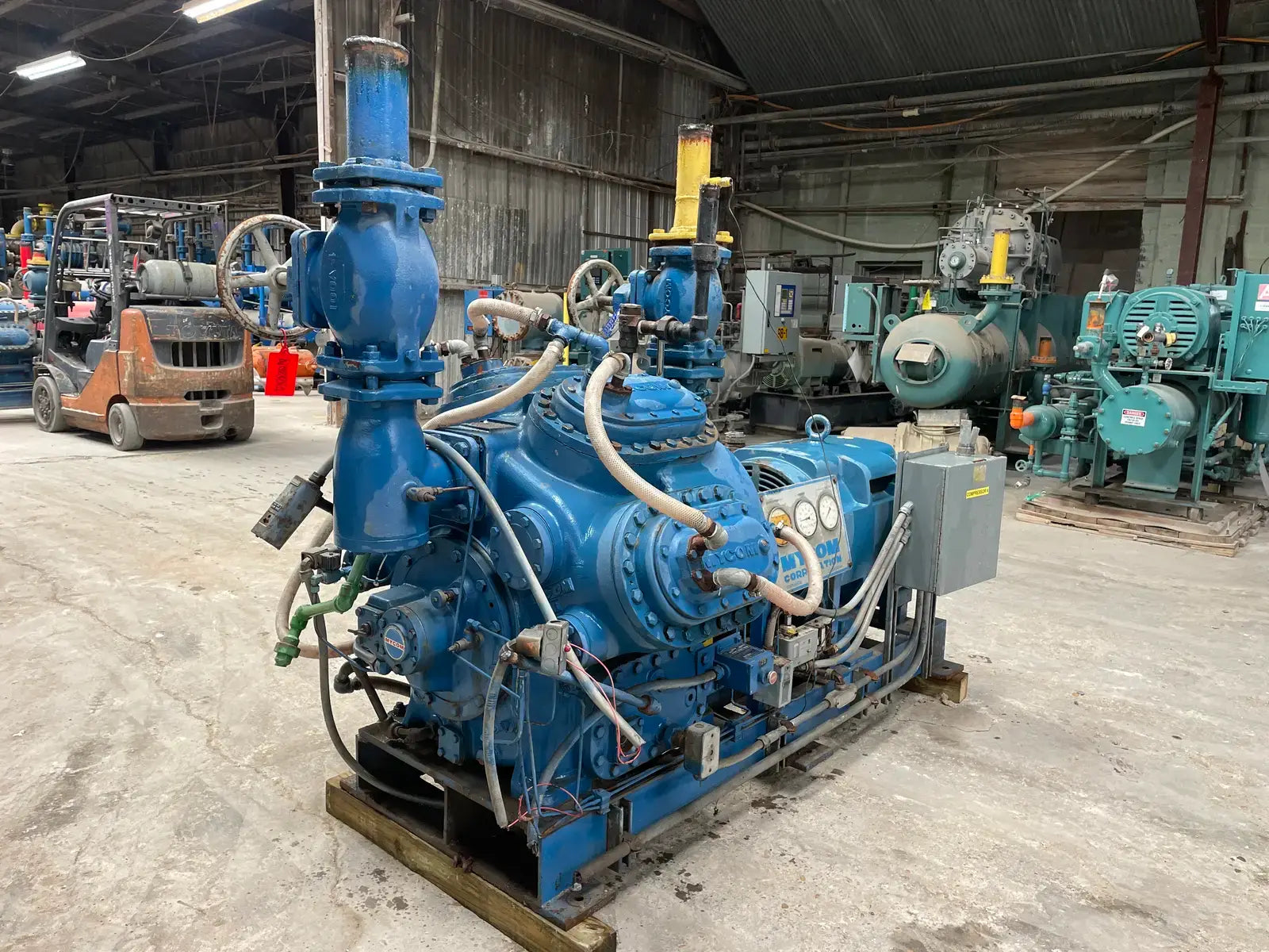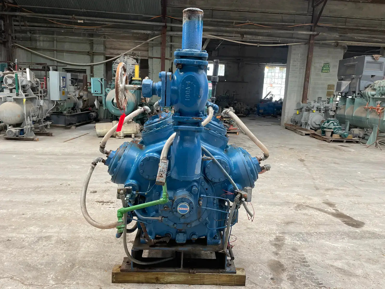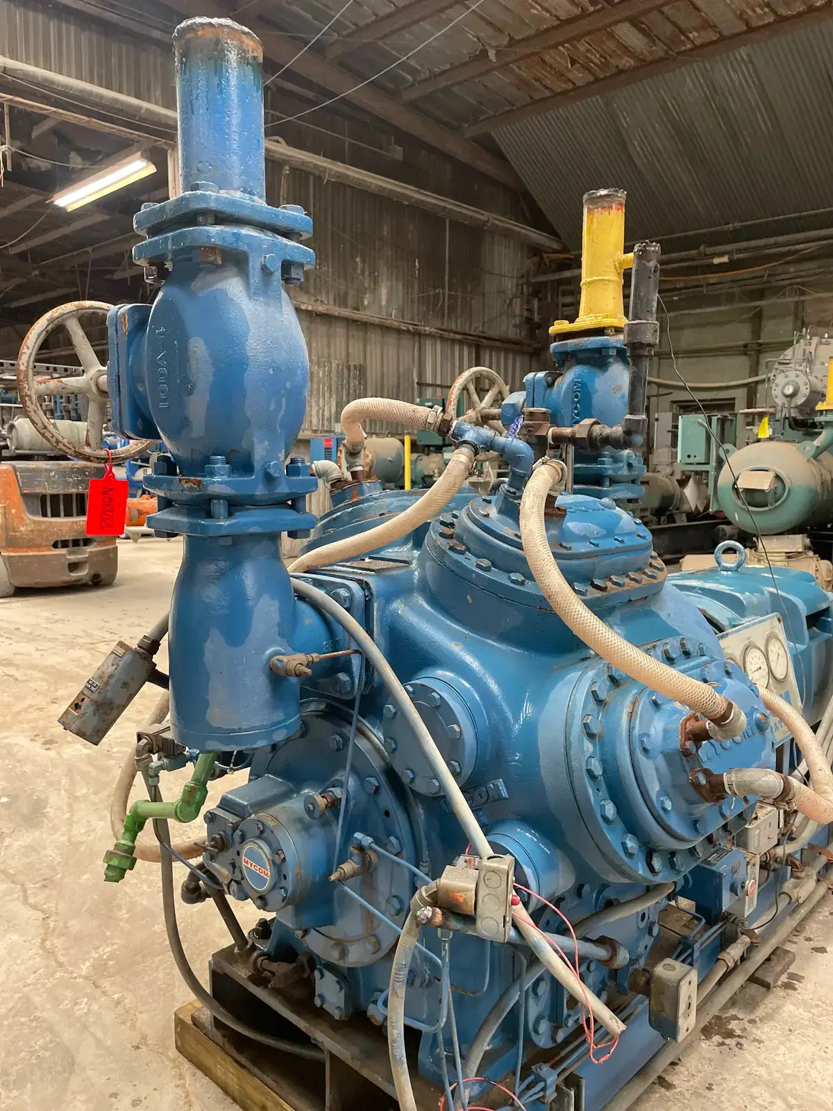 Paquete de compresor alternativo Mycom de 8 cilindros. Número de cilindros: 8. Velocidad máxima: 1200. Conexiones: Succión: 4 pulg. Descarga: 3,5 pulg.
