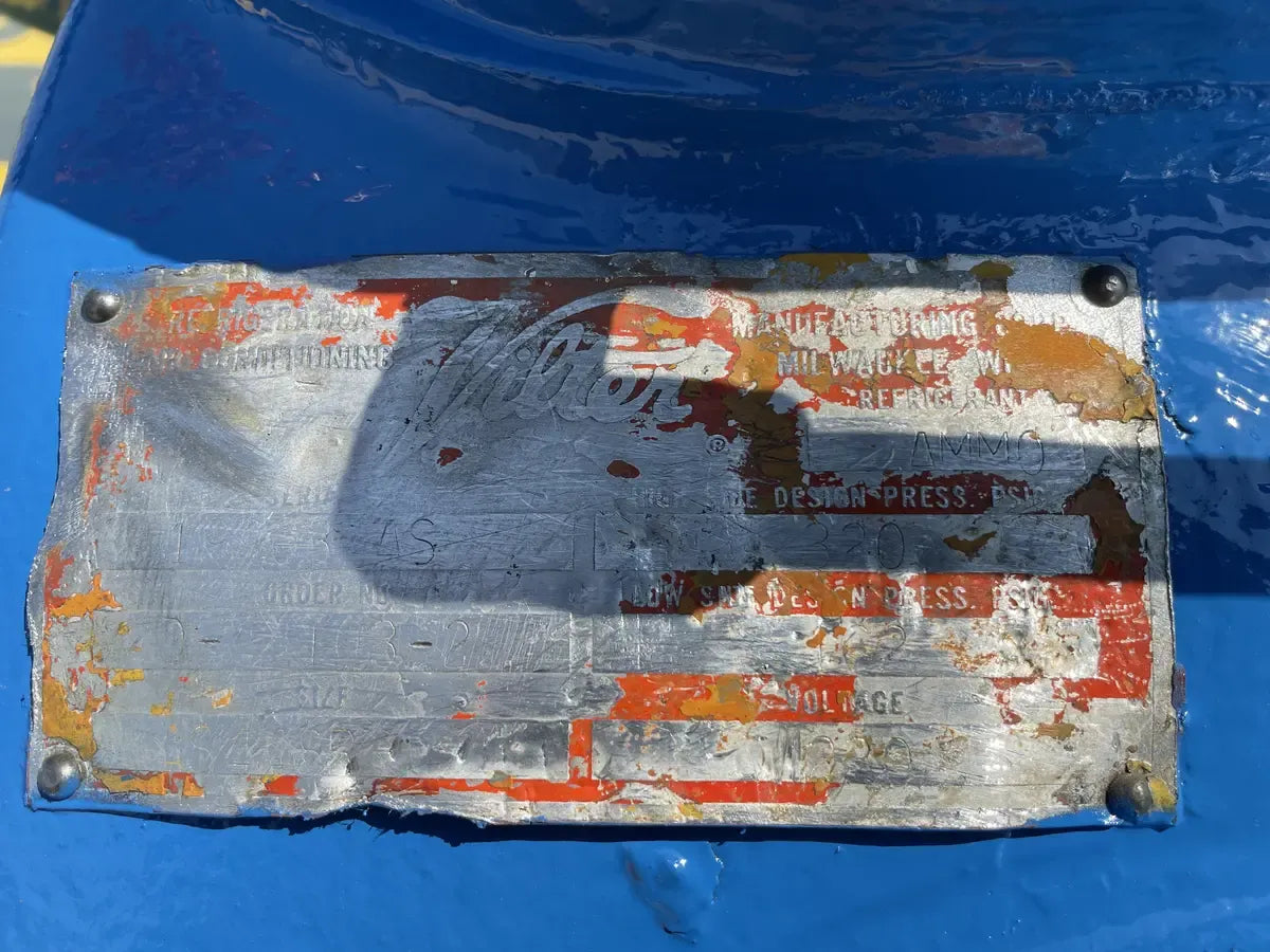 Compresor alternativo Vilter 448 de 8 cilindros. Número de serie: 19903 AS, Número de pedido: 0-44163-2, Tamaño: AS448B. Presión de diseño del lado alto: 320 PSIG. Presión de diseño del lado bajo: 162 PSIG. Voltaje: 200. Número de cilindros: 8. El compresor ha sido El compresor ha sido recién pintado. Motor Leroy-Somer - HP: 100, FR: 404 T, Hz: 60, Sf: 1.1, Voltios: 460, AMPS: 111, RPM: 1770 Ins Cl: B, Código: A, Des: B, AMB: 40c.