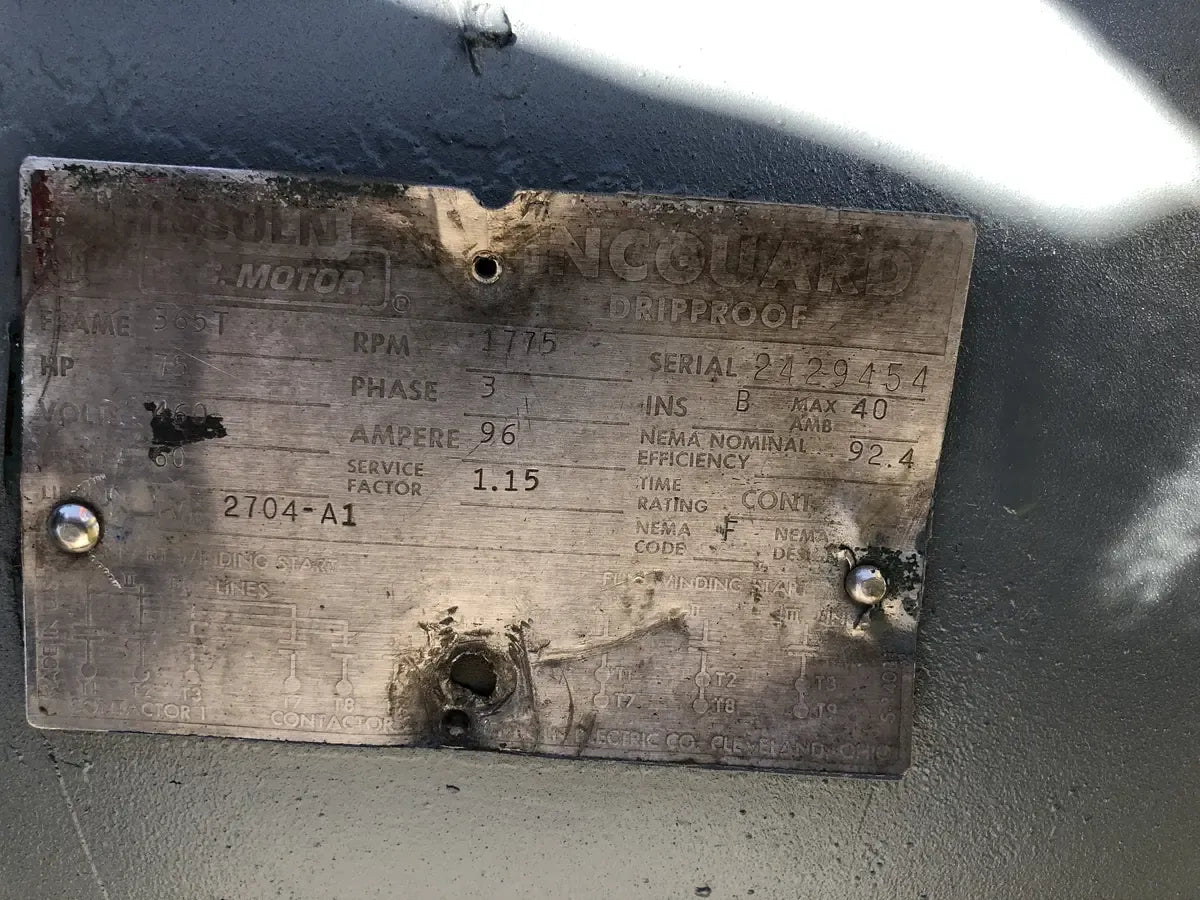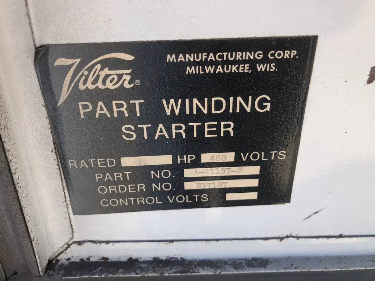 Compresor alternativo Vilter 454 de 4 cilindros. Refrigerante anterior: Amoníaco. Número de serie: 45711. Número de pedido: E- 37187-3, Prueba hidrostática: Alta 525 Baja 375. Tamaño: A11K454, Voltaje: 115 V. Motor Lincoln: 365T, Rpm: 1775, Número de serie: 2429, HP: 75, Fase: 3, Voltios: 460, Amperios: 96, Factor de servicio: 1.15, Clasificación de tiempo: Cont. Arrancador de bobinado de piezas Vilter: Clasificado: 75 HP, 460 V, Número de pieza: A-41137-P, Número de pedido: E37187. Restaurado Con Pintura Nueva.