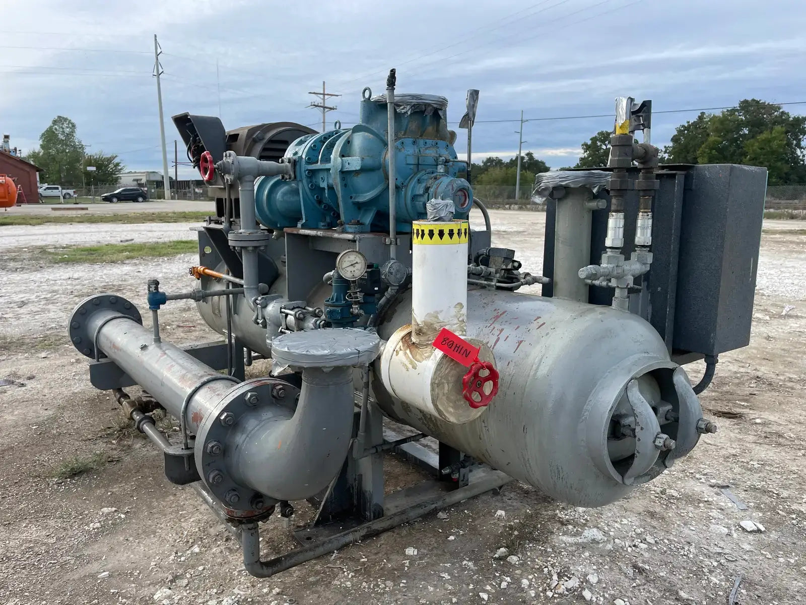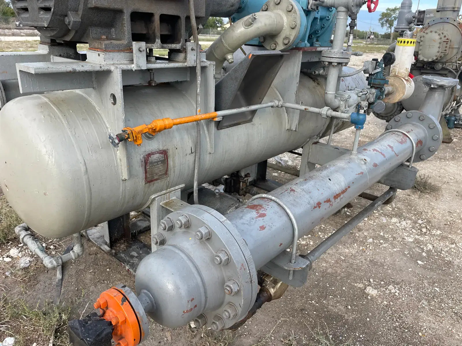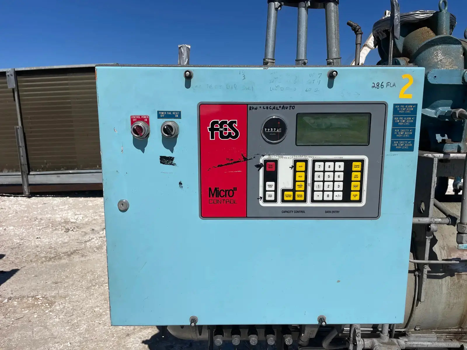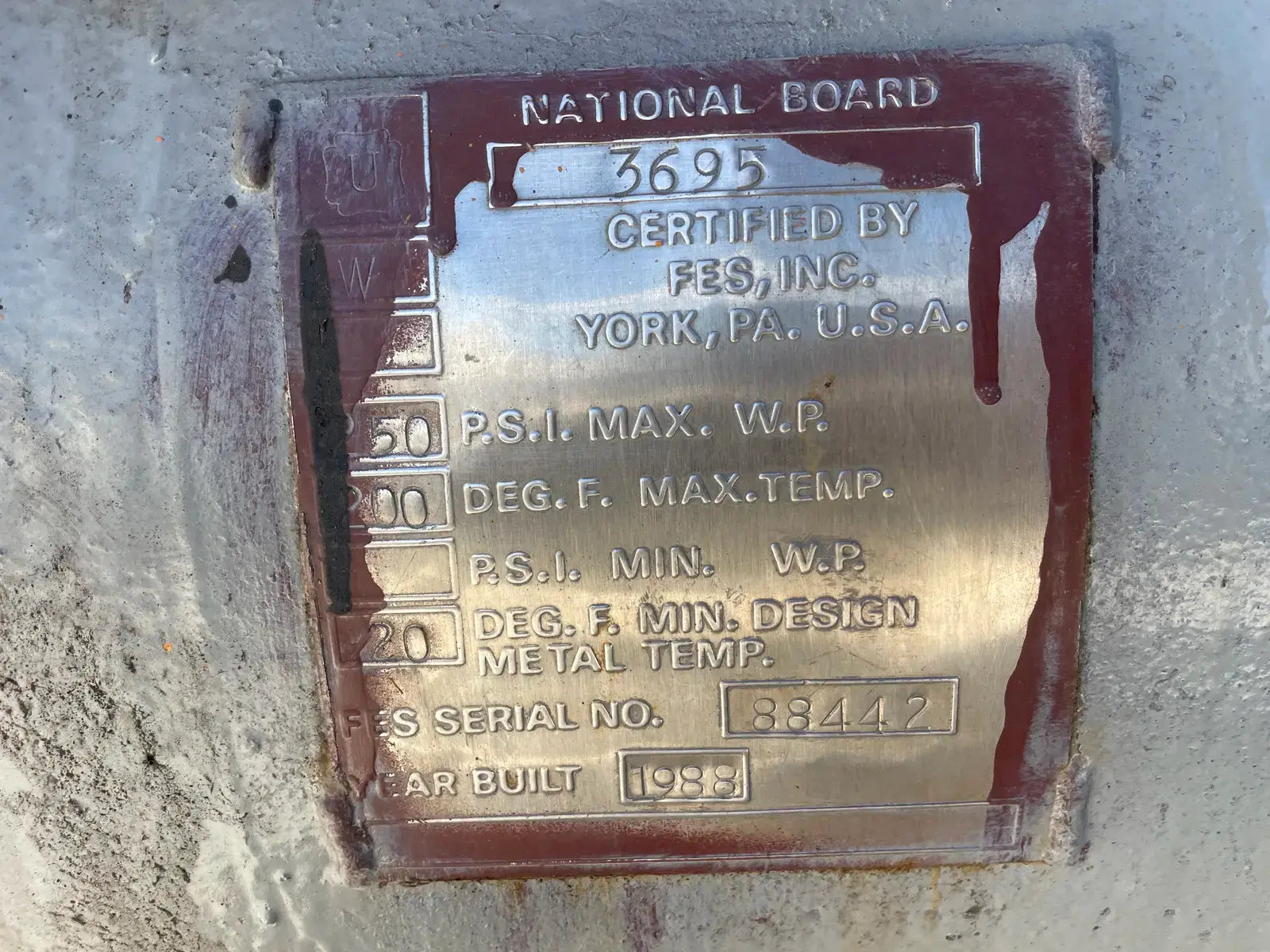 Paquete compresor de tornillo rotativo FES. Modelo: FES 225E. Número de serie: 88-0311-0302. Contrato FES No: 88-0311-0302-09. Fecha: 13-12-88. Compresor Rotativo de Tornillo Desnudo Mycom - Modelo: 200MUD-HX. Número de serie: 2030192. FUGA (PSIG): 313. HYD (PSIG): 470. Certificado por el separador de aceite FES - Junta Nacional: 3695. Número de serie FES: 88442. Presión máxima de trabajo en PSI: 250 PSI. Temperatura máxima: 200 F. Temperatura mínima del metal: -20. Panel de control FES Micro II.