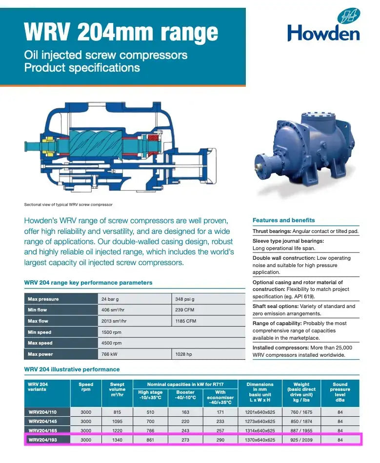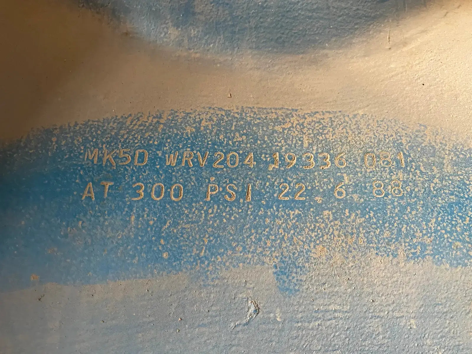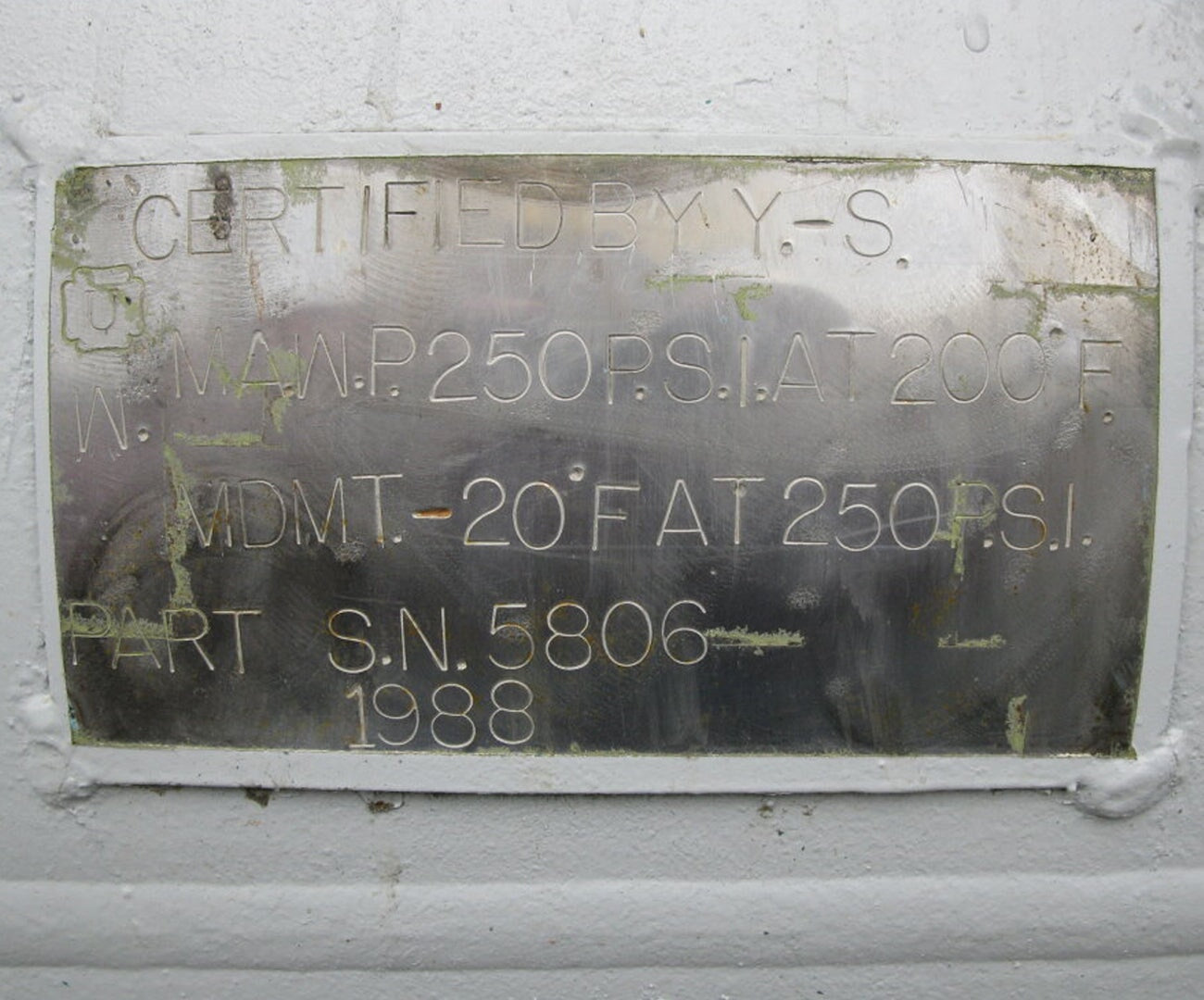 Paquete compresor de tornillo rotativo FES 315 / Howden 204/1.93. Modelo: 315. S/N: WRV204-19336-081. Panel de control: Modelo: FES315E. Número de serie: 88-0219-0301. Refrigerante: R-717. Configuración de Vi fija: 3.6. Desplaza 488 CFM a 1800 rpm o 950 CFM a 3000 RPM. Presión de prueba de fugas: 313. Presión de prueba hidrostática: 470. Separador de aceite: FES, S/N: 88261. Nat'l Bd: 3643. MAWP: 250 psi @ 200ºF. MDMT: -20ºF a 250 psi. Radio: extremos elípticos. Bomba: Bomba Viking: Modelo: AV428AL. S/N: 5019514. Motor: 7,5 hp, 1175 rpm, 230/460 V, 20,4/10,2 amperios, 60 Hz, trifásico. Entradas/Salidas: (2) 1 pulg. de diámetro. puerto. (1) 2 pulgadas de diámetro. puerto. Dimensiones totales: 10 pies 10 pulgadas de largo x 4 pies 3 pulgadas de ancho x 6 pies 5 pulgadas de alto. Tiempo de funcionamiento del compresor: 8291 horas (ACN328a-BC/Motor-88).